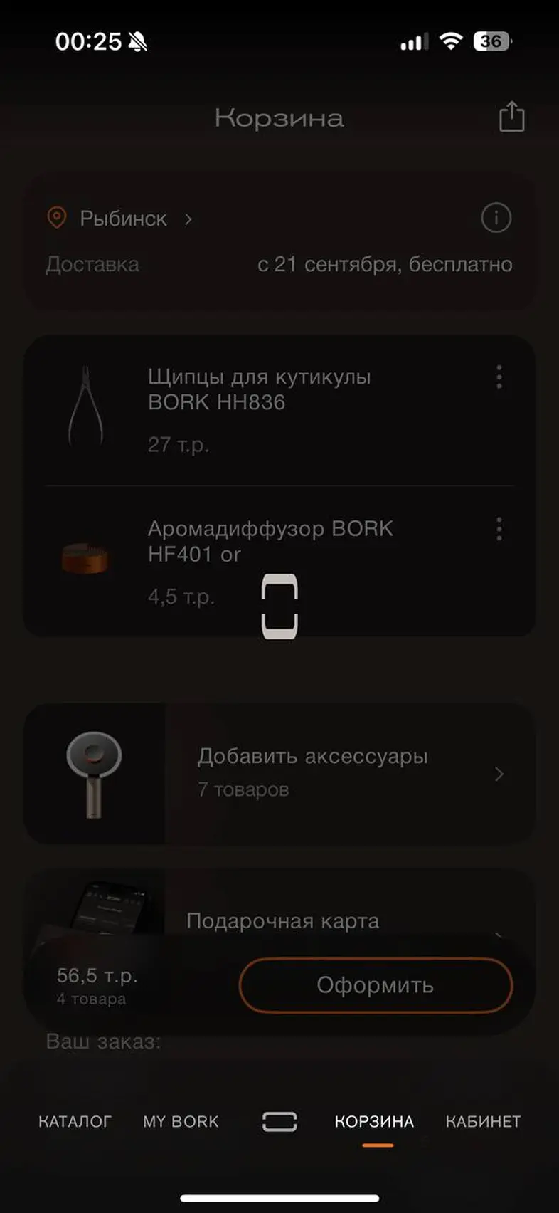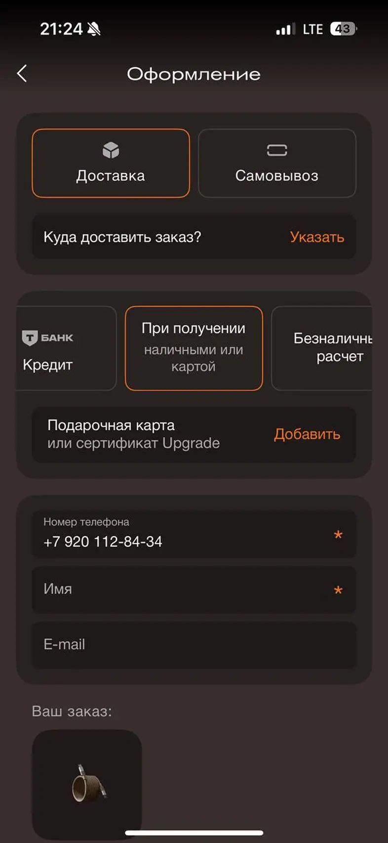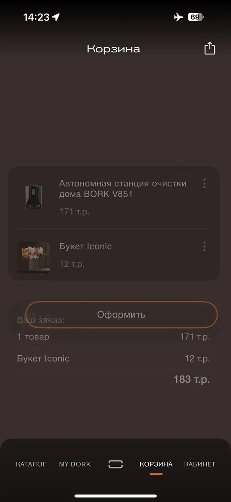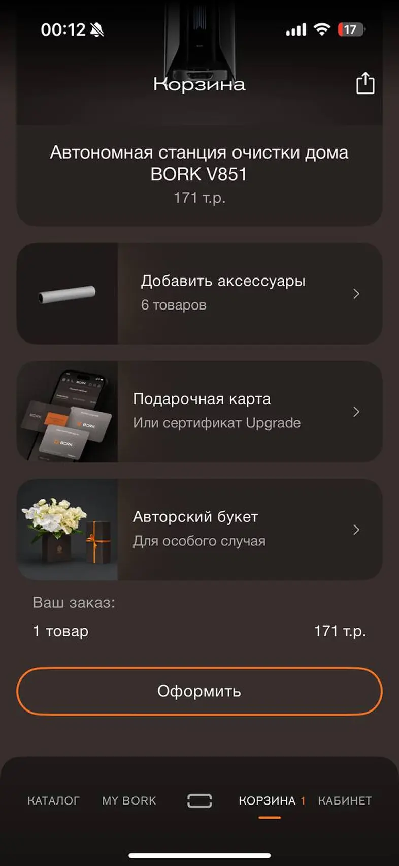 Оформить заказ из корзины