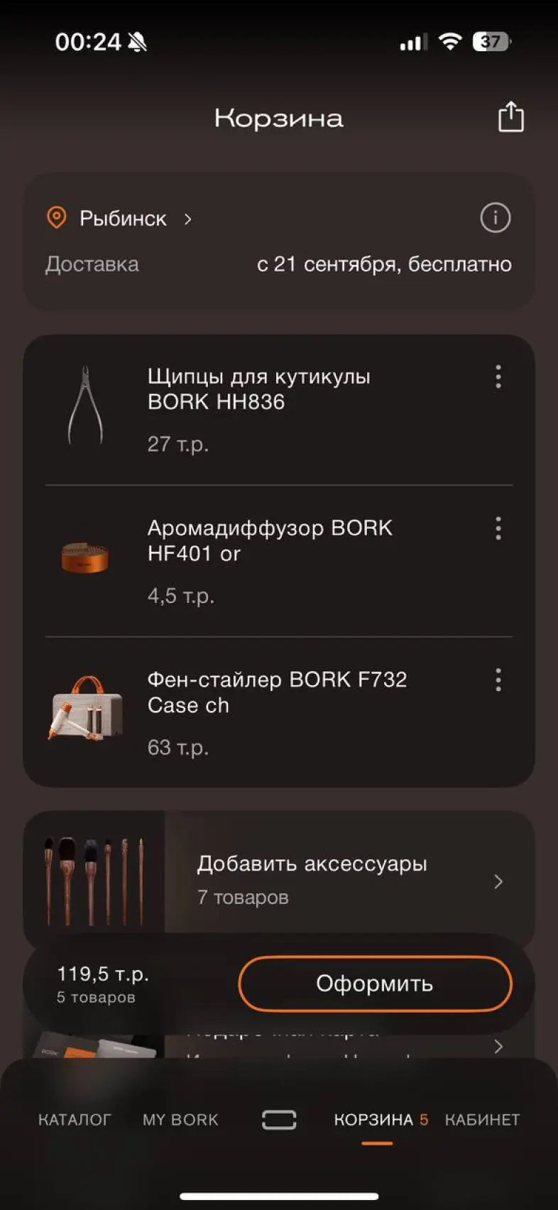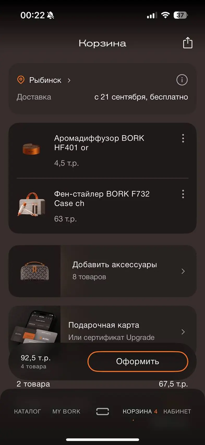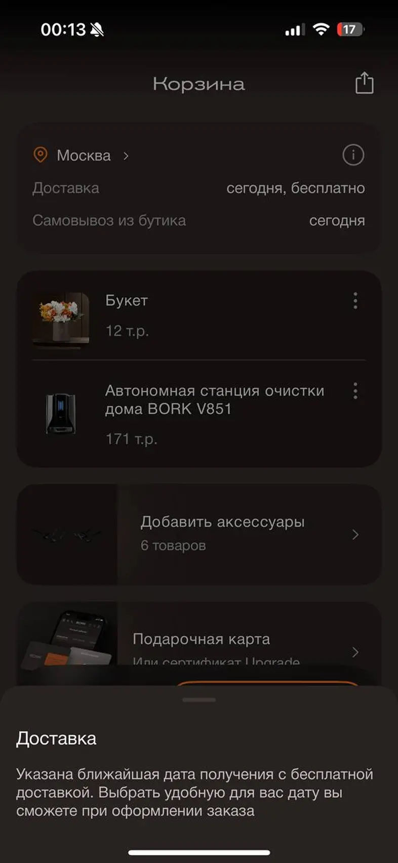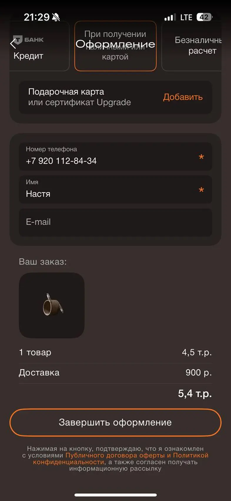 Оформить заказ из корзины