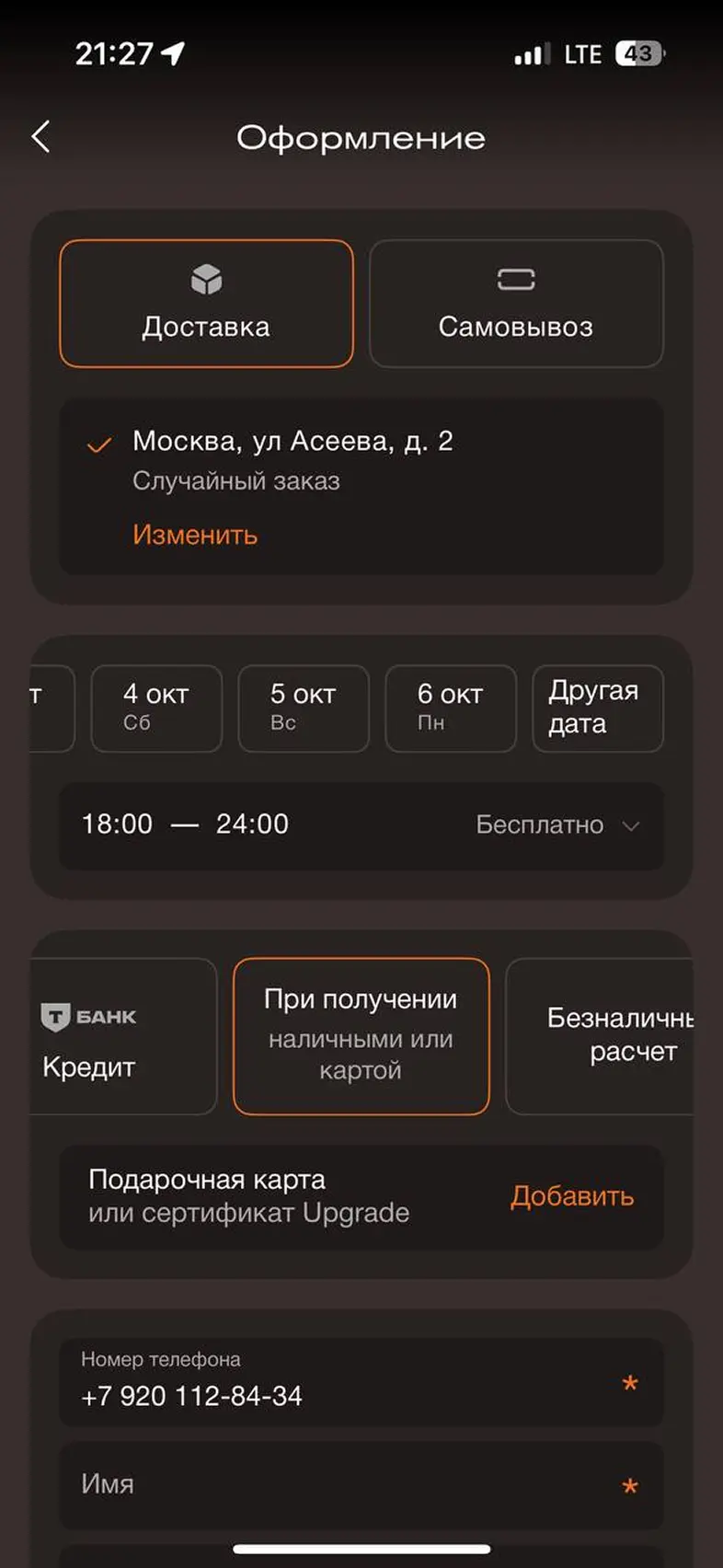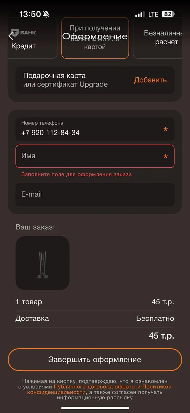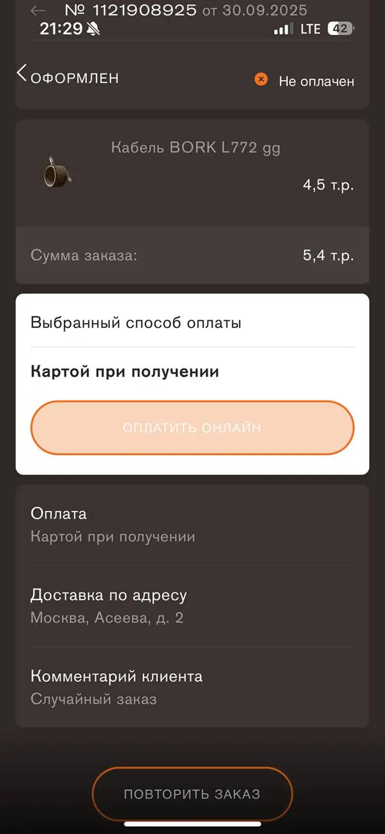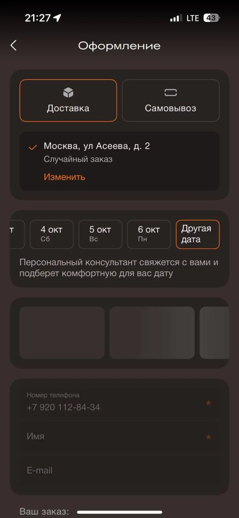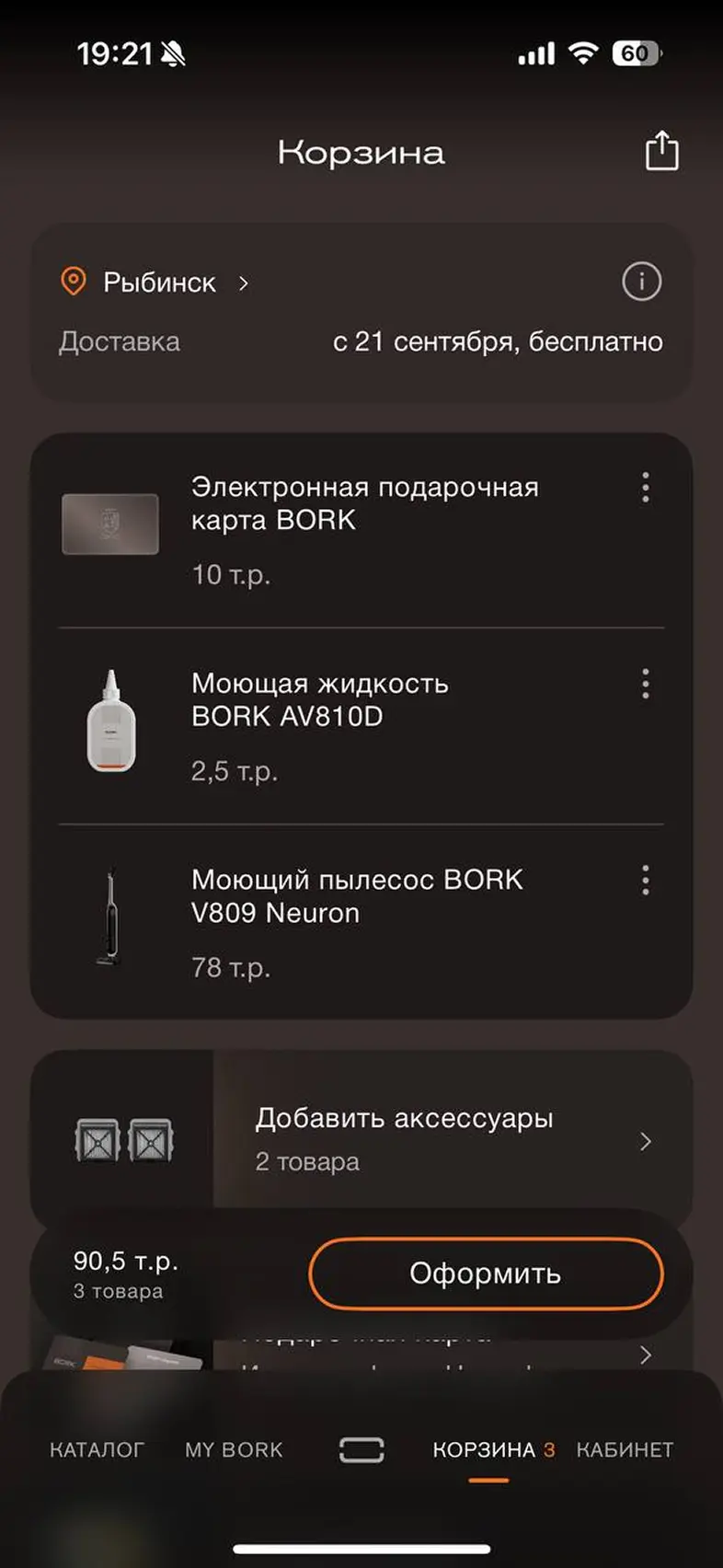Оформить заказ из корзины