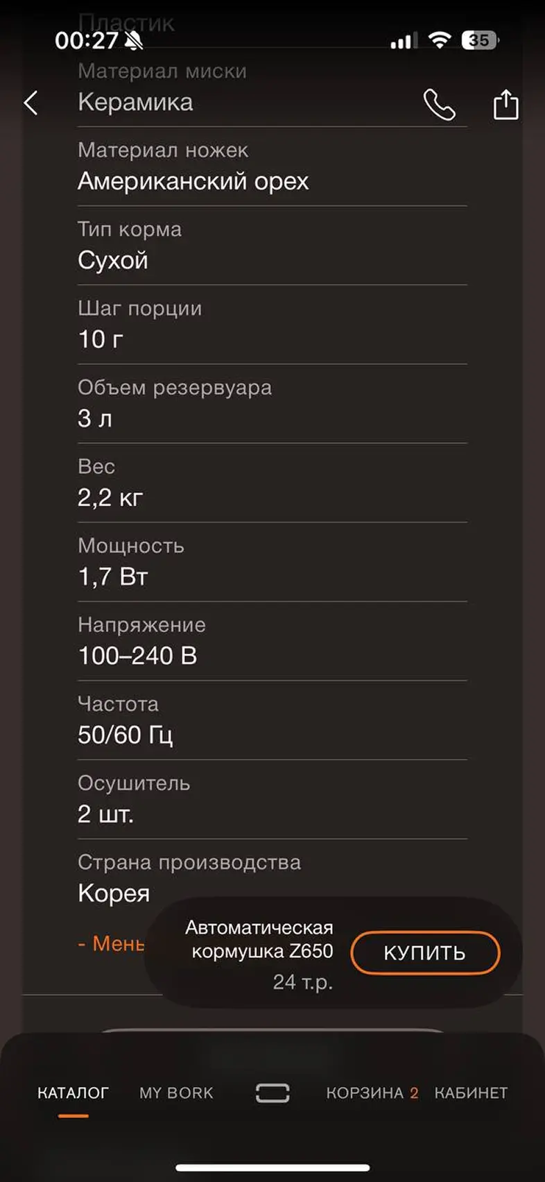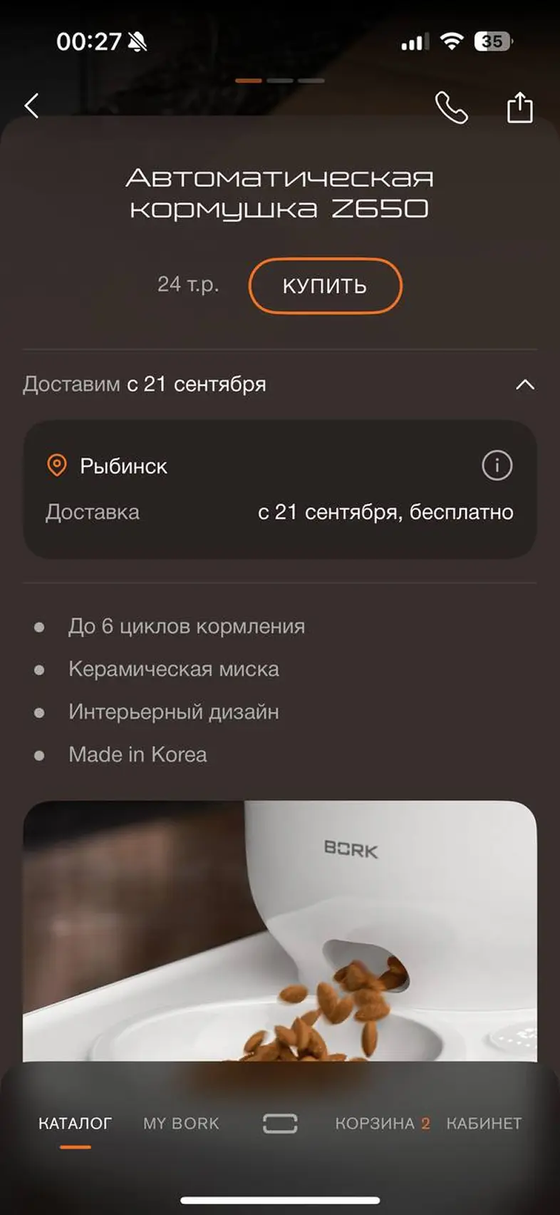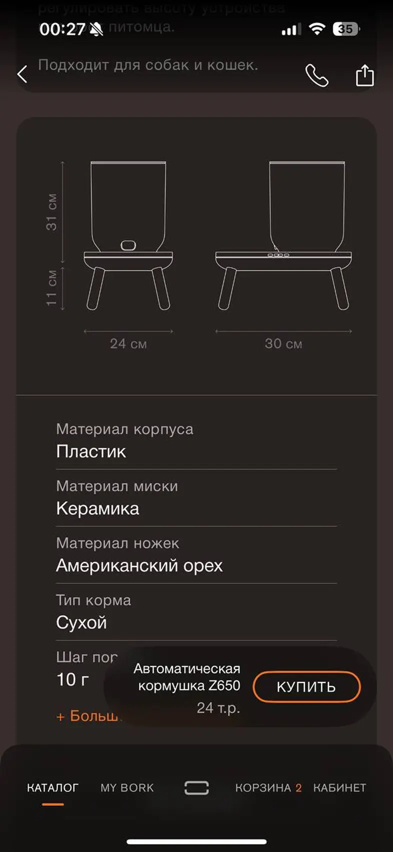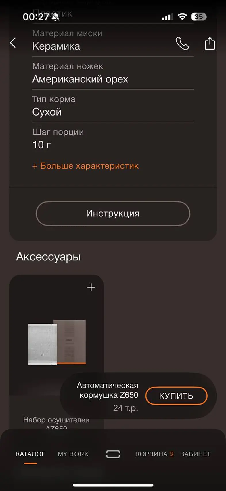 Оформить заказ из корзины