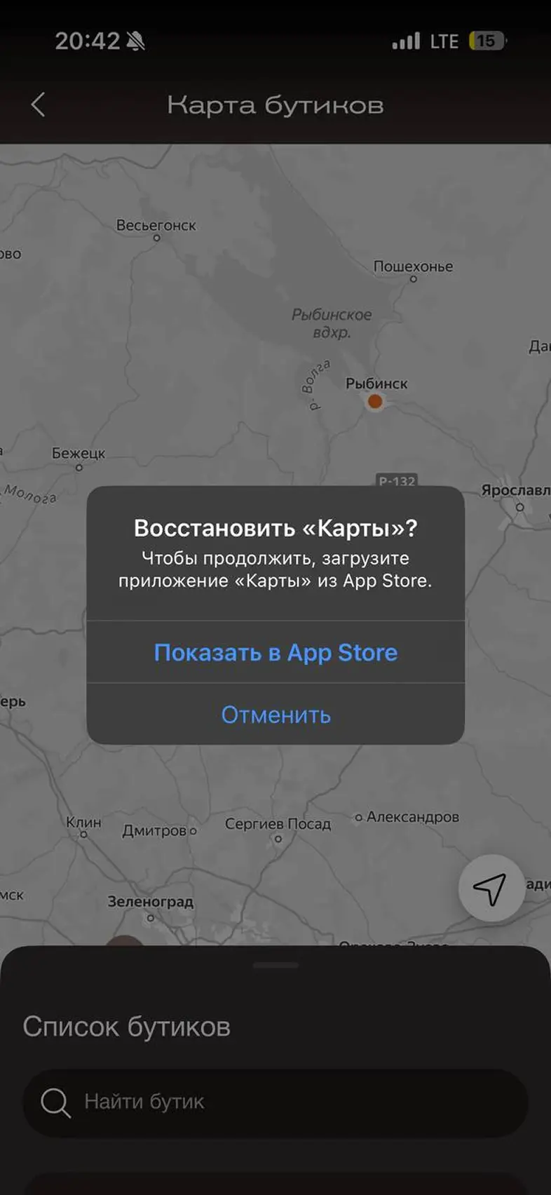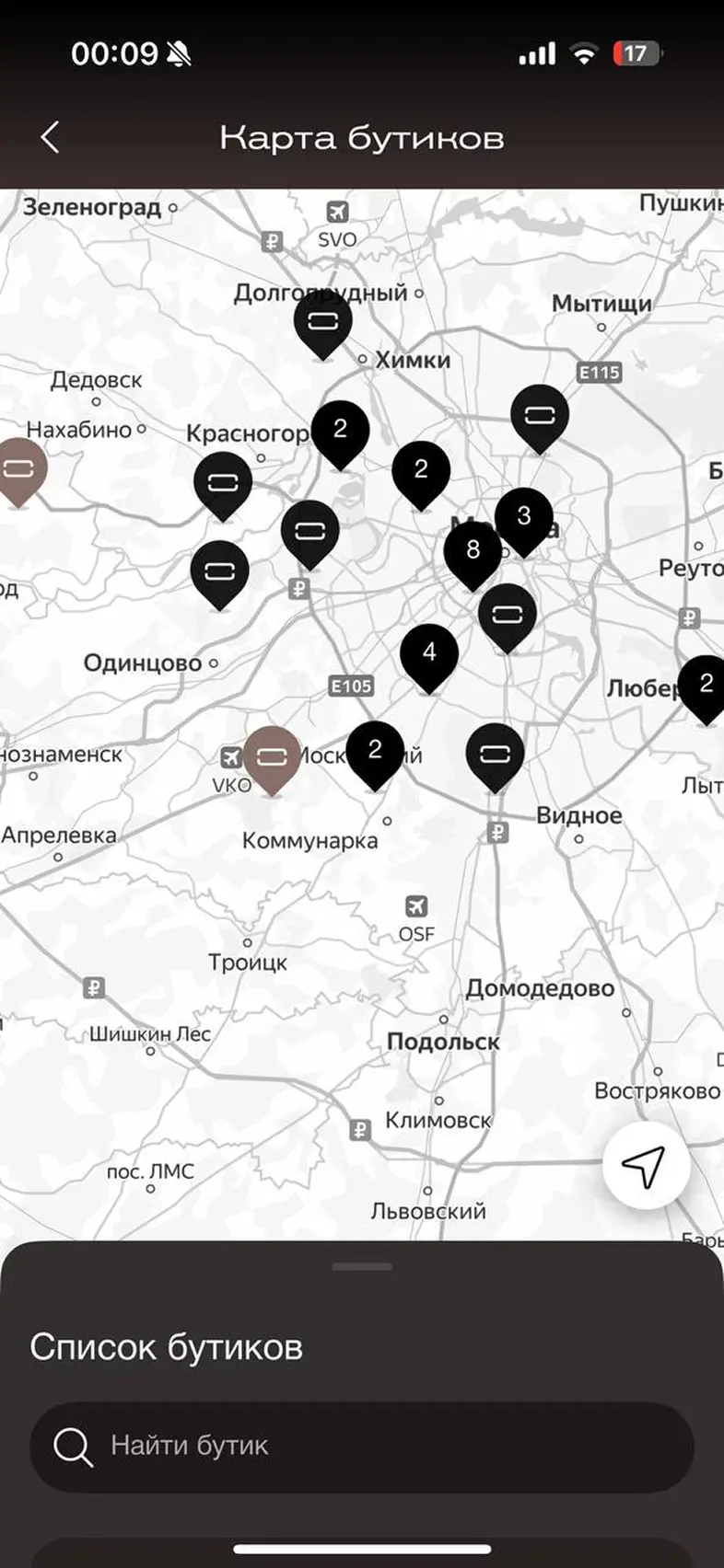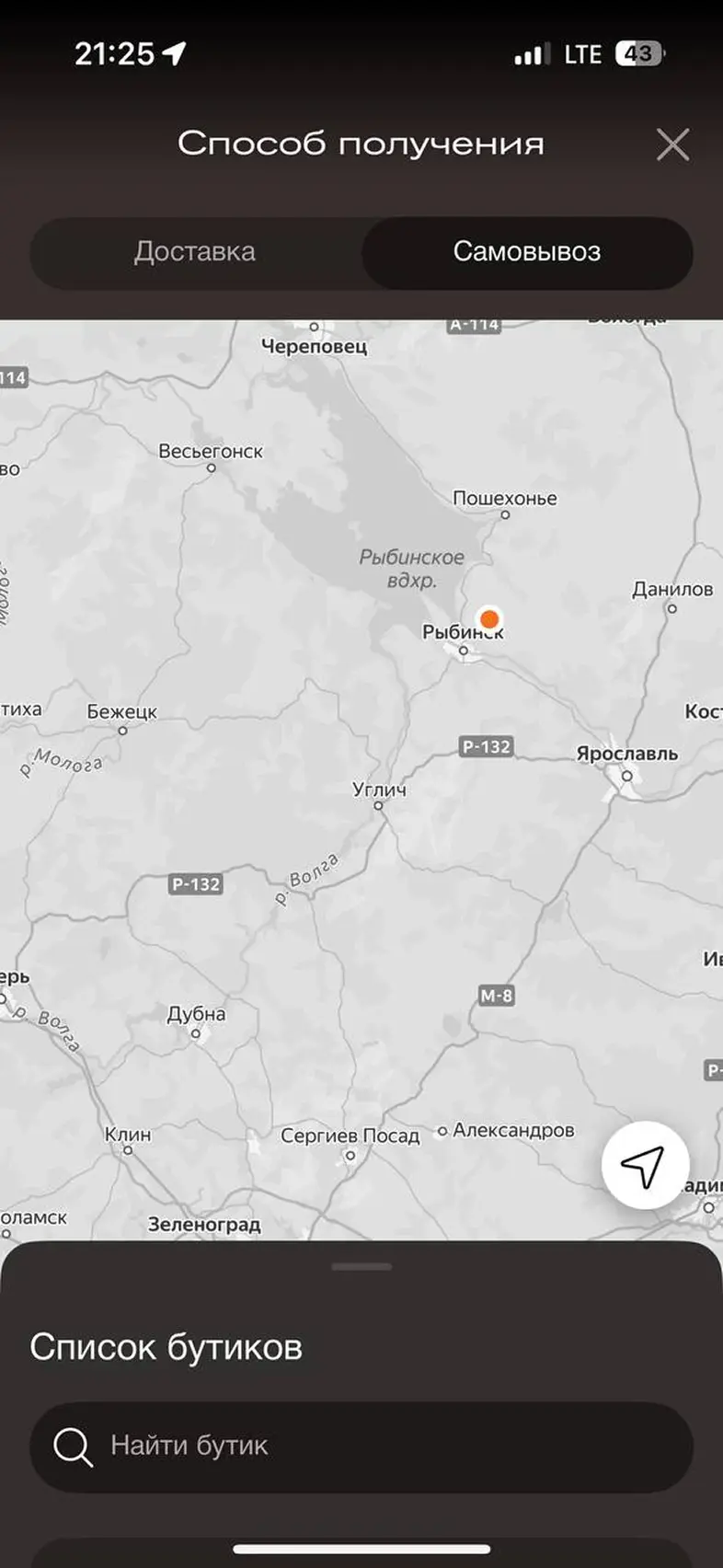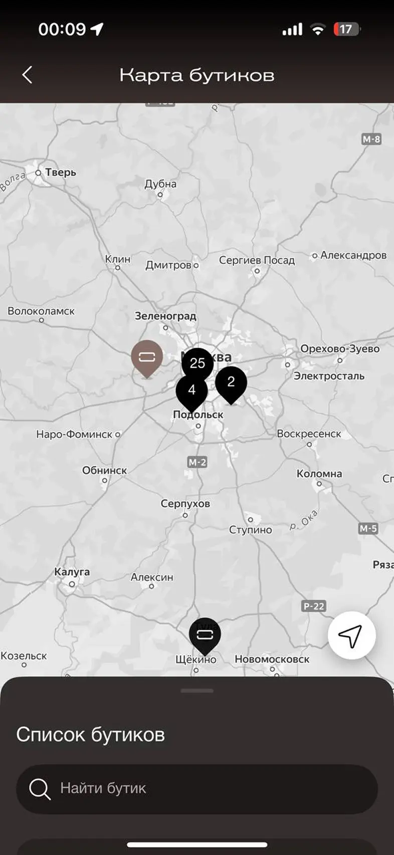 Поиск бутика на карте