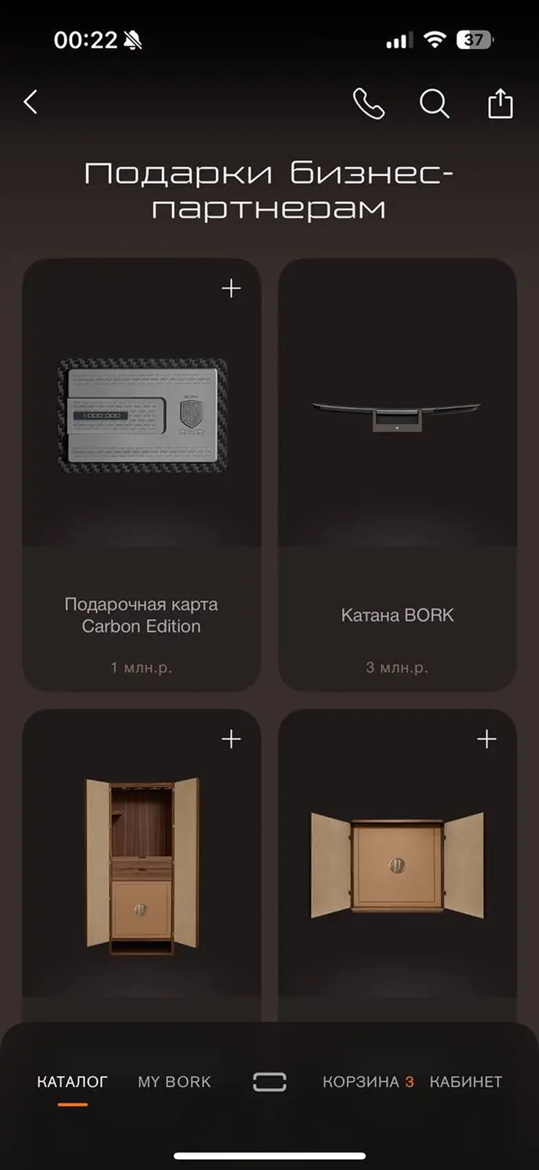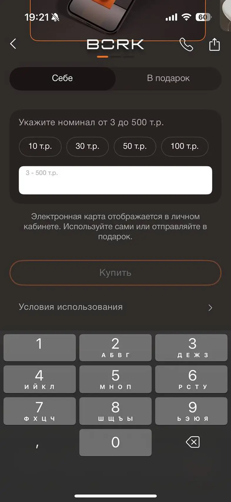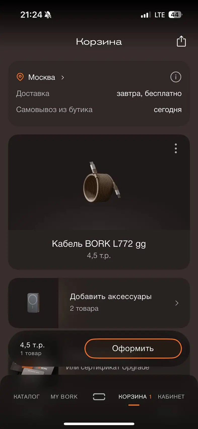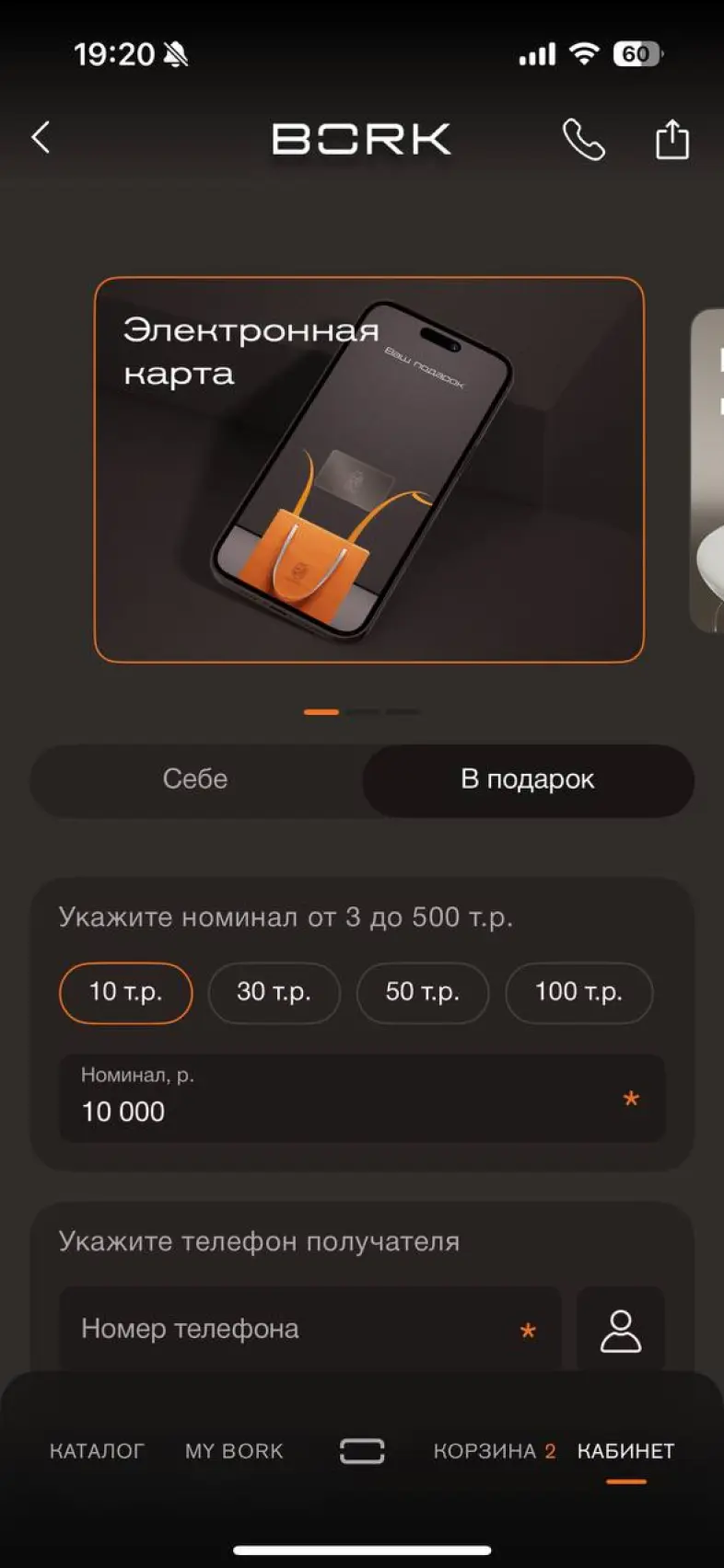 Выбрать карту привелегий и добавить в корзину