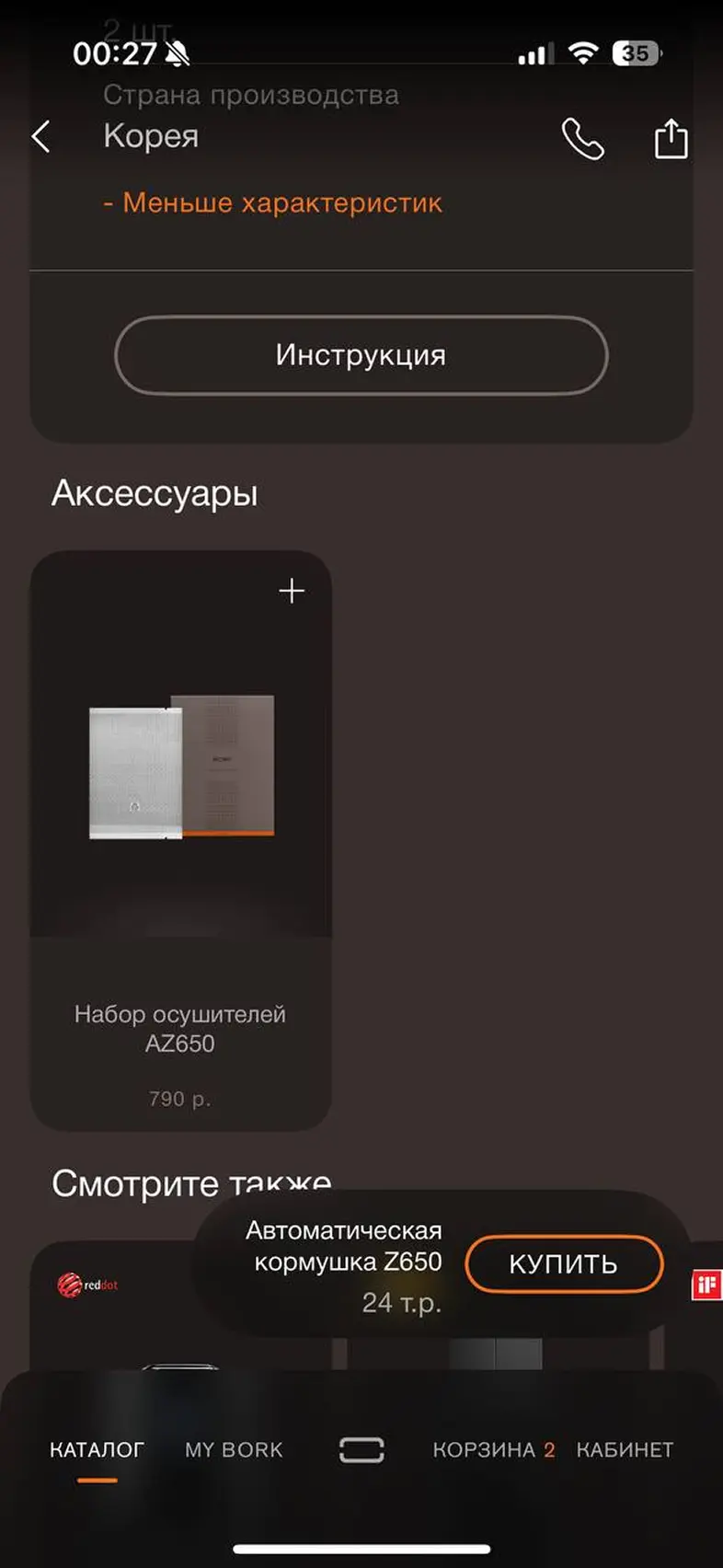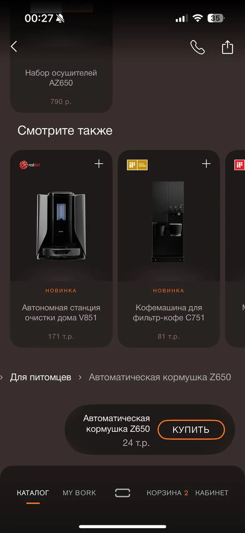 Просмотр карточки товара + дополненная реальность