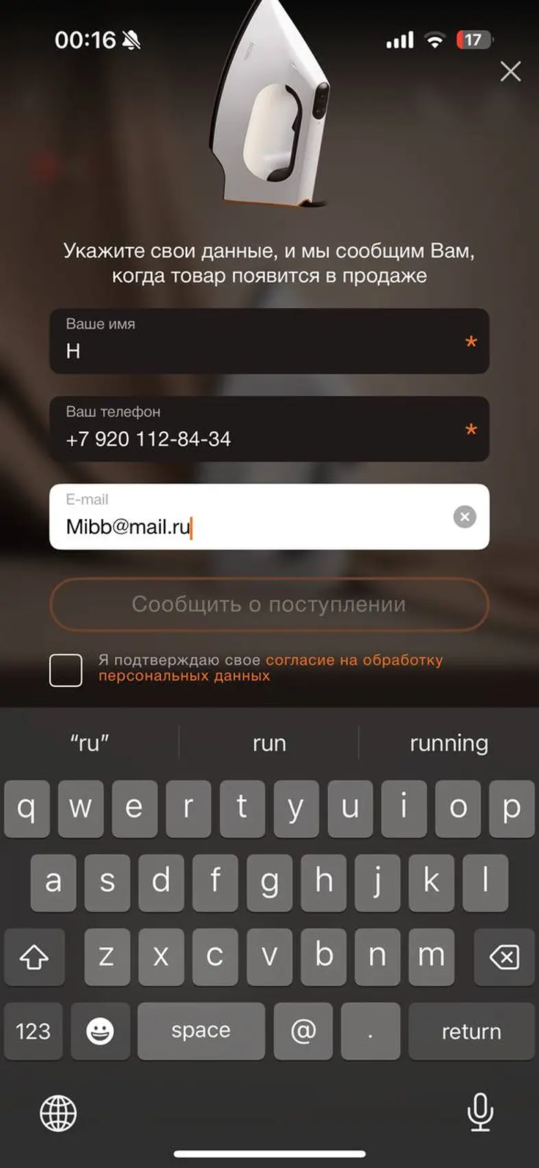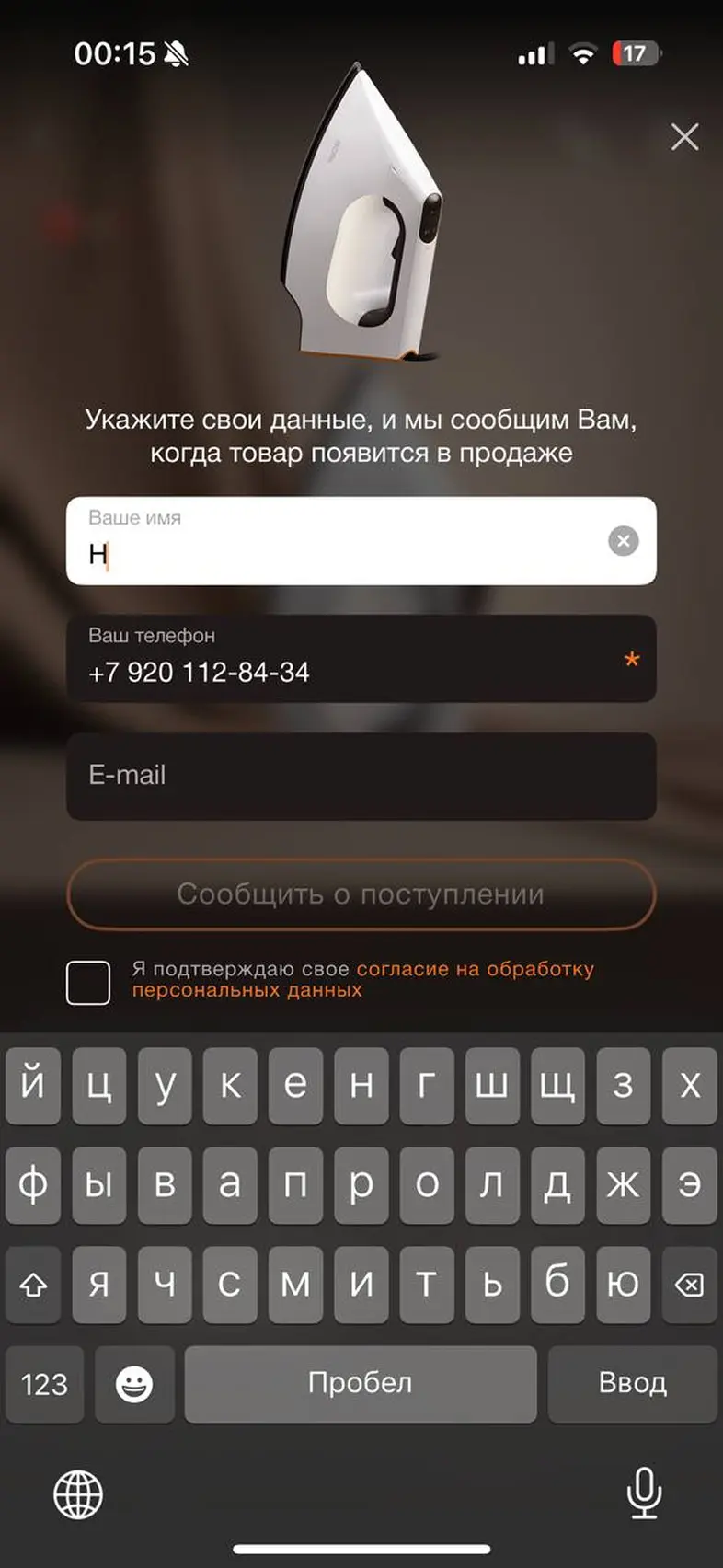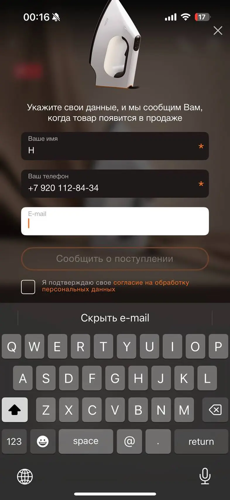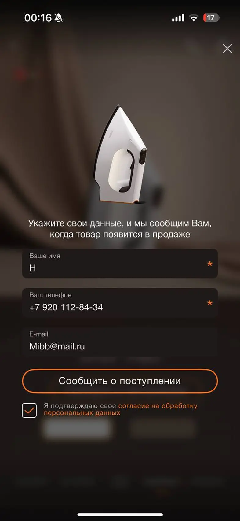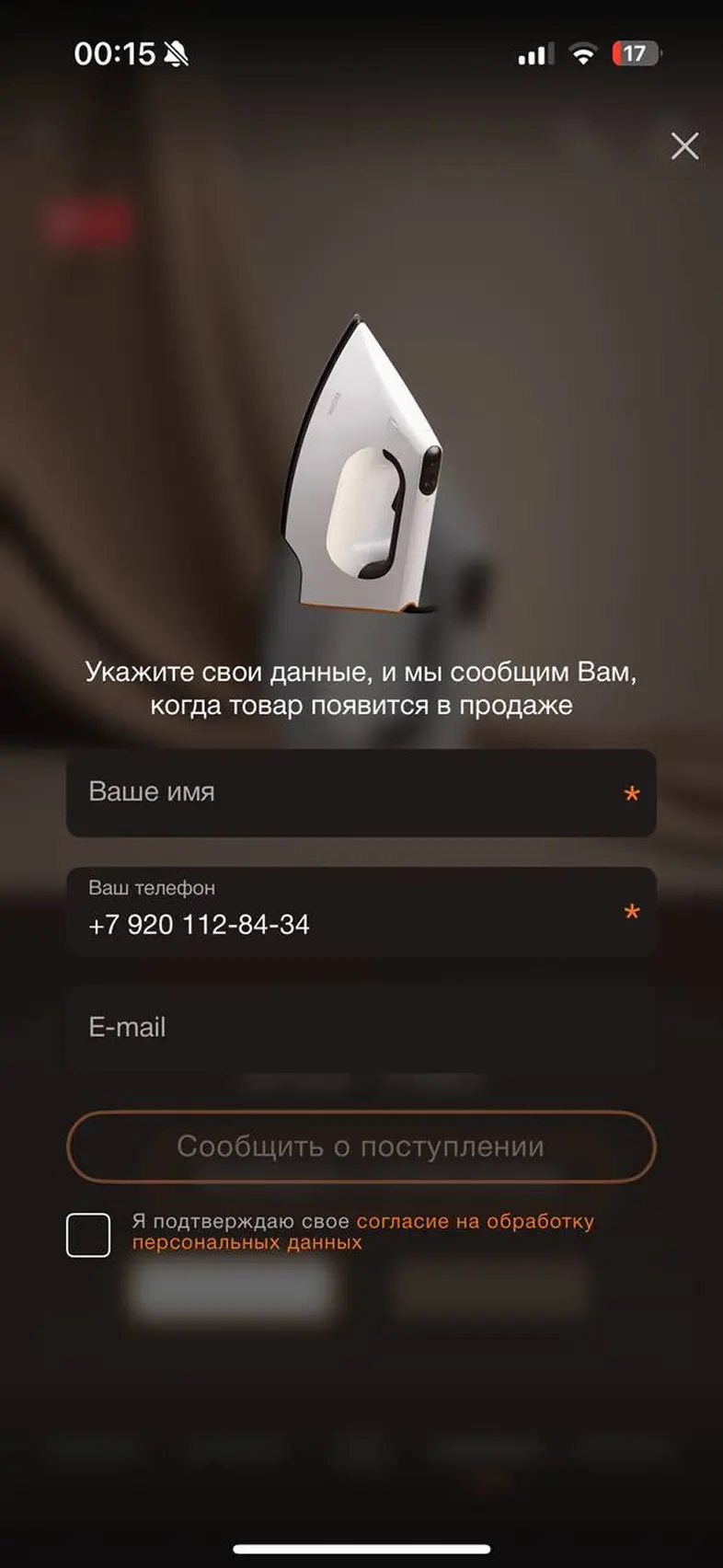 Оставить заявку о поступлении товара