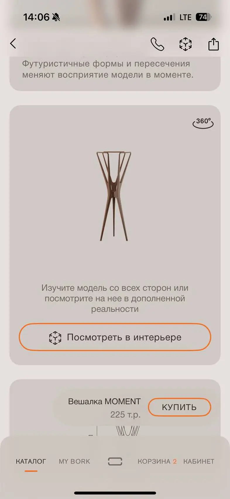 Просмотр карточки товара в 3D + дополненная реальность
