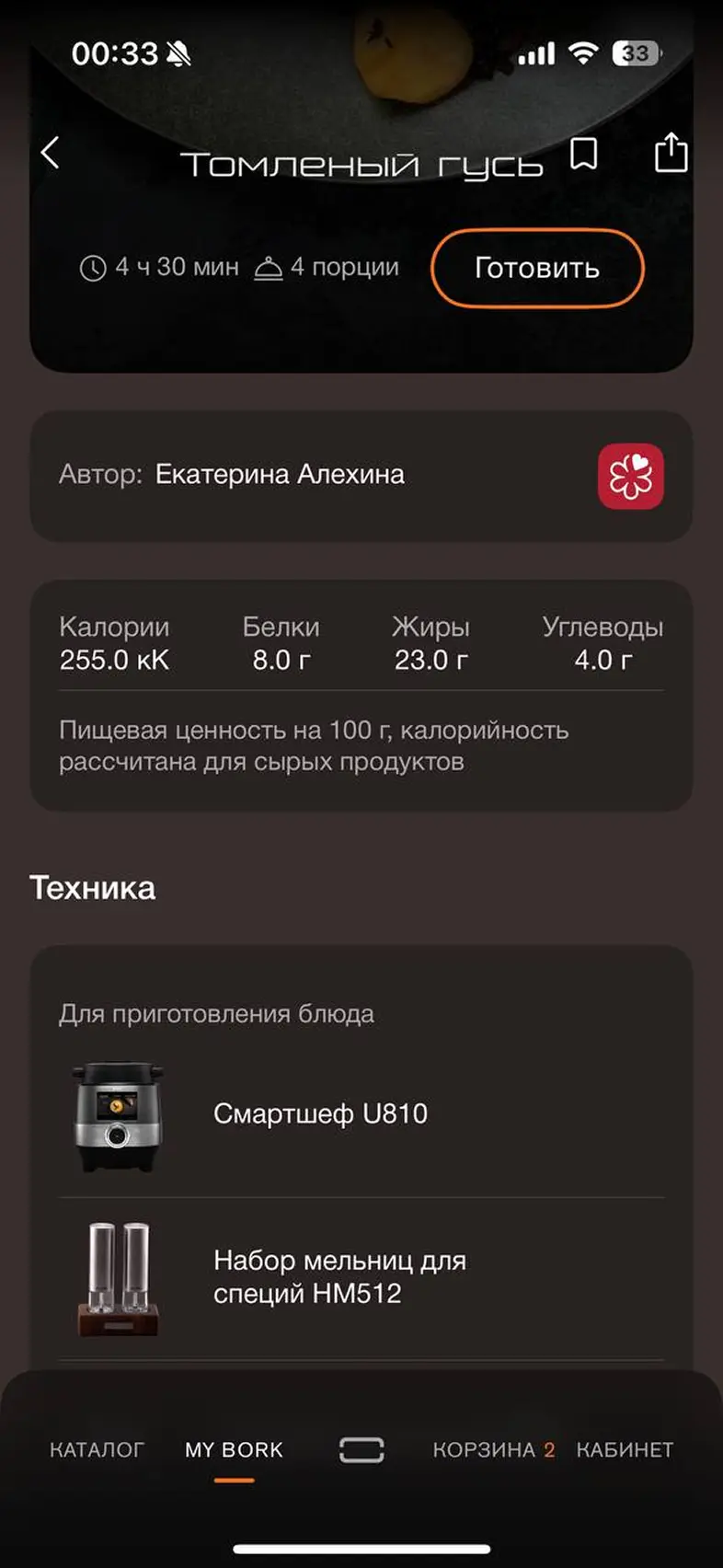 Просмотр рецепта из подборки, , добавить рецепт в избранное, добавление устройства для приготовления