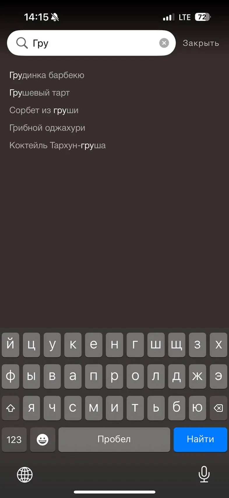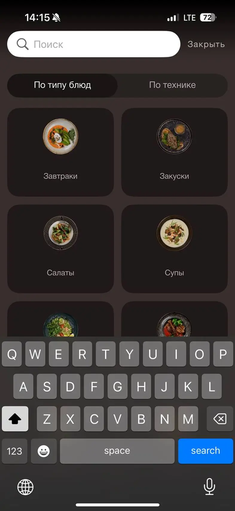Поиск рецепта для оборудования по назваию блюда