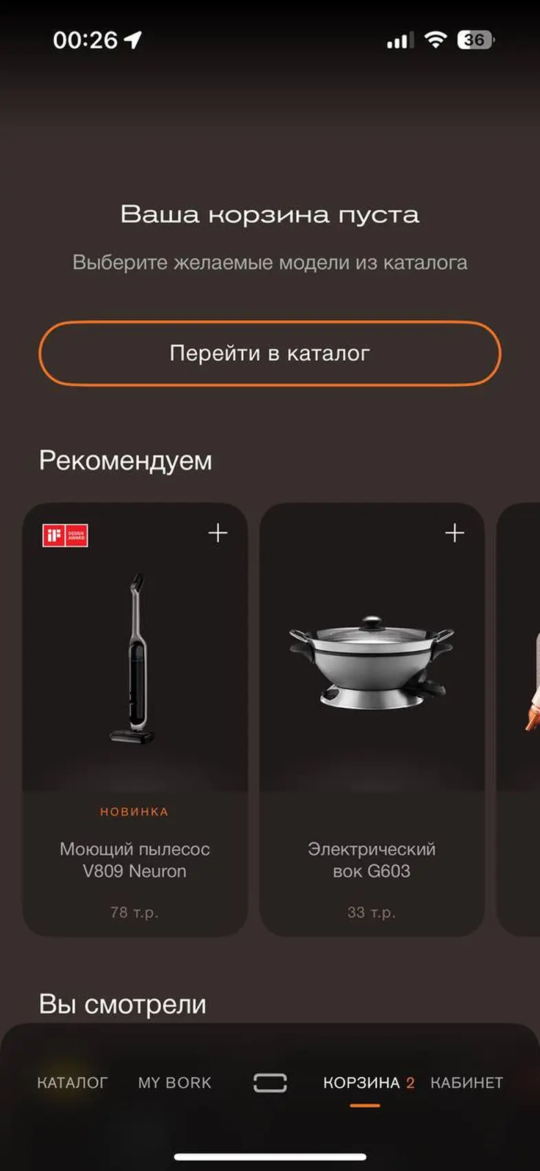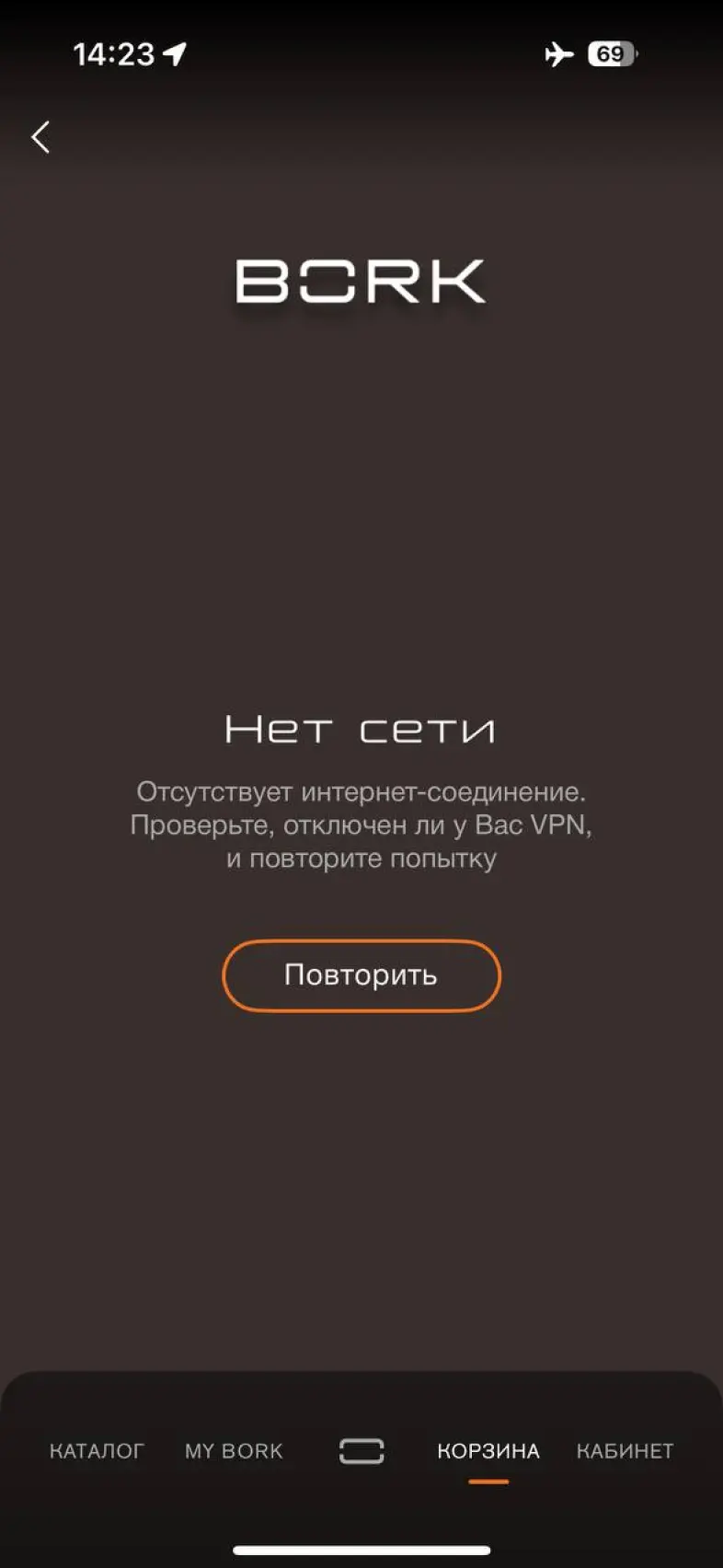 Переход в корзину - Нет сети