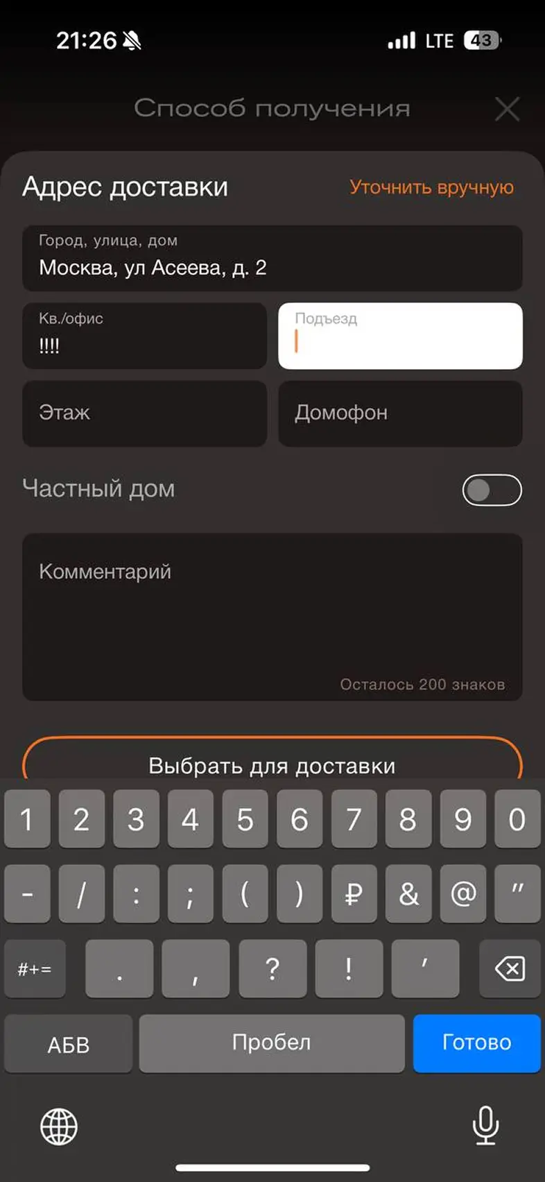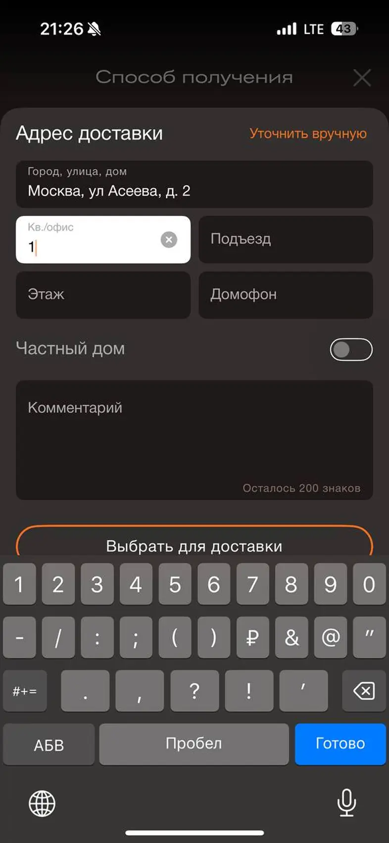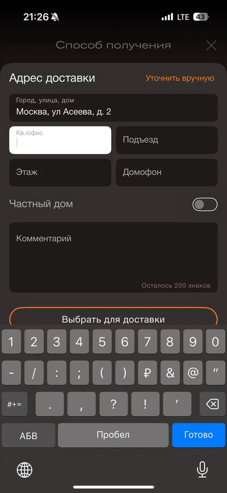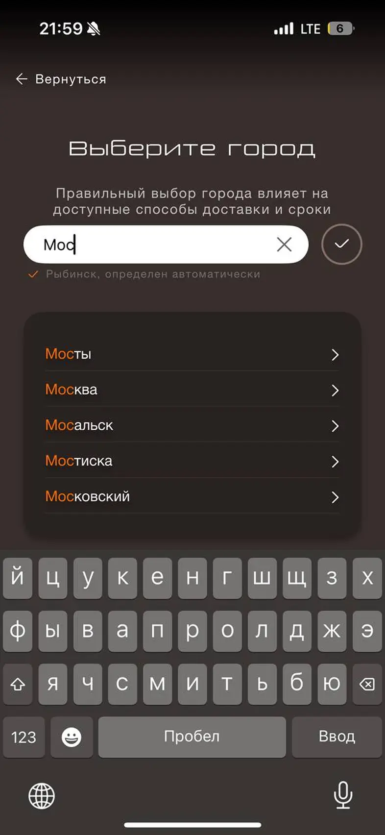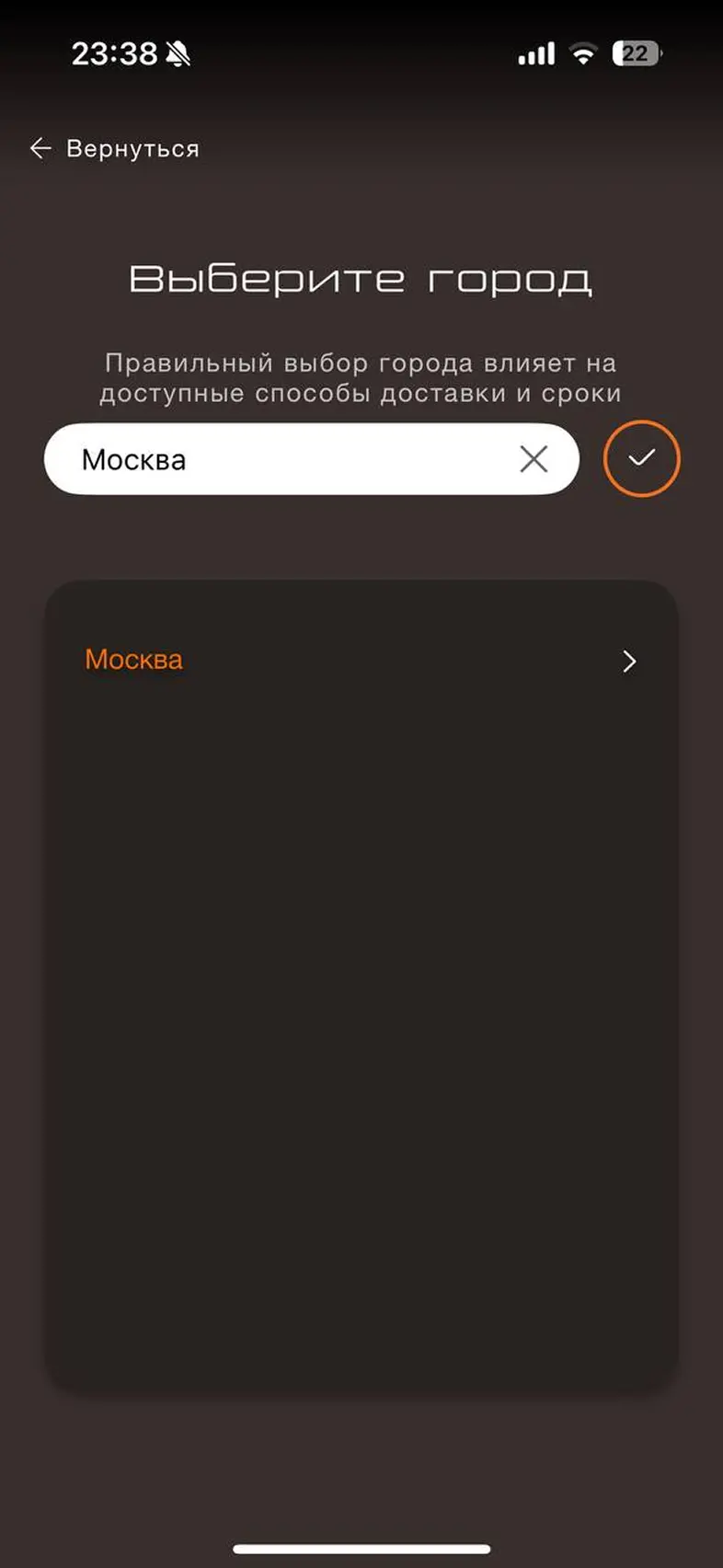 Смена города доставки