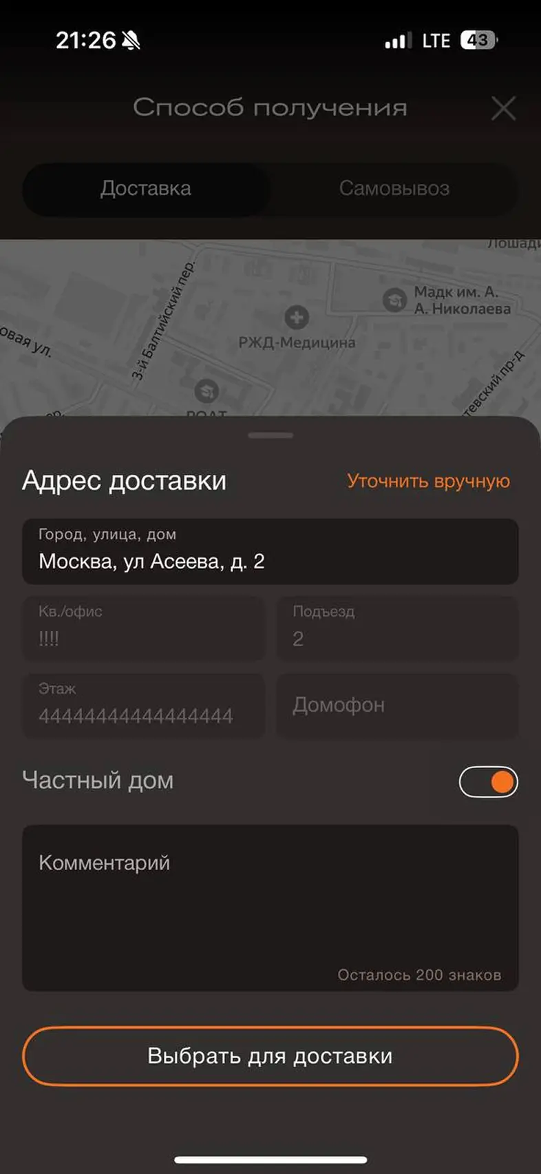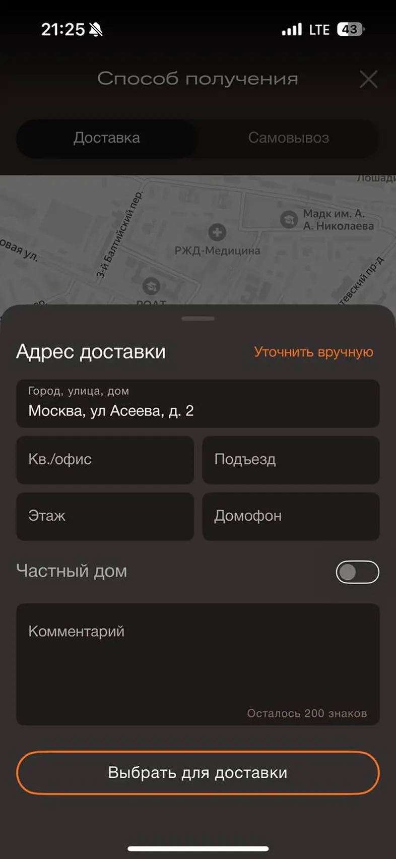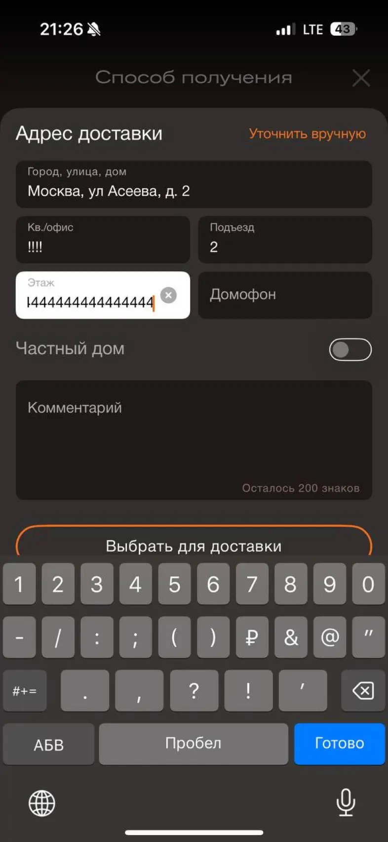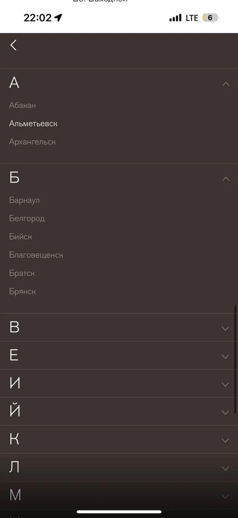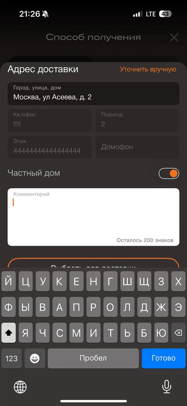 Смена города доставки