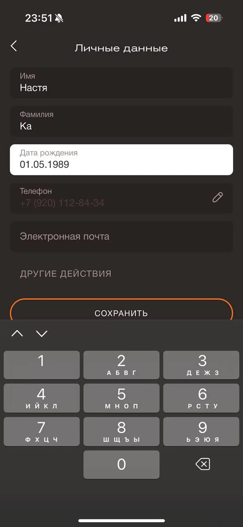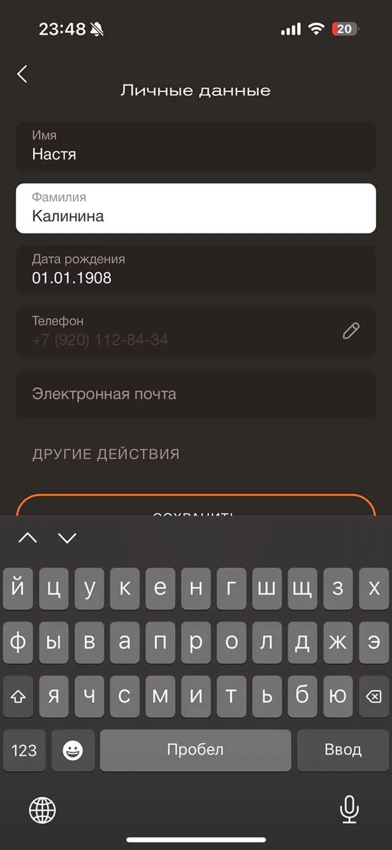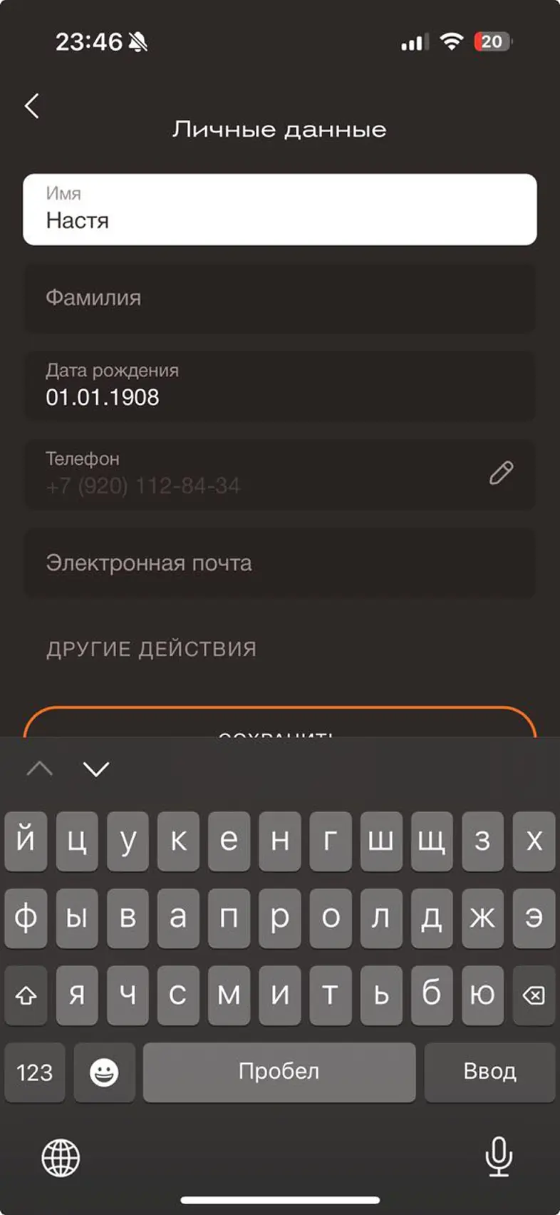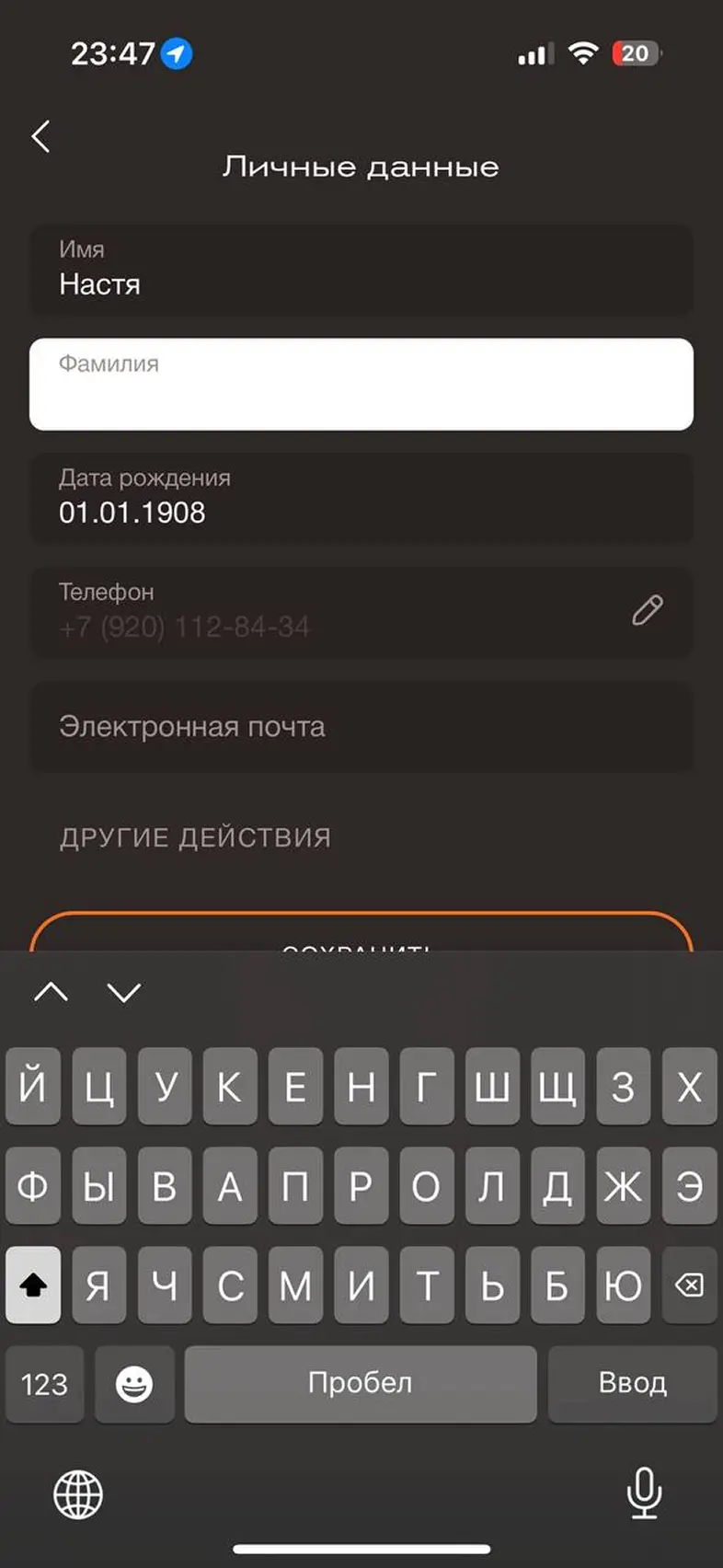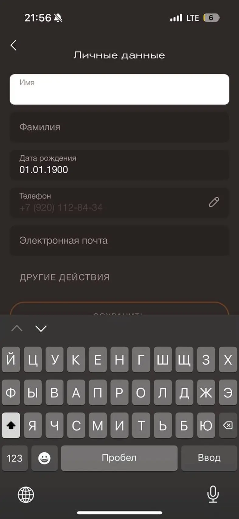 Заполнить личные данные в профиле