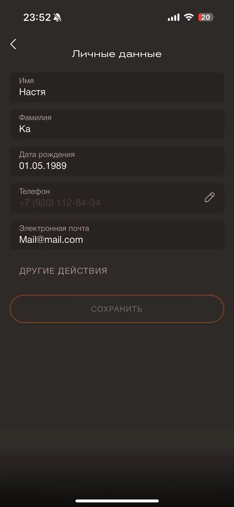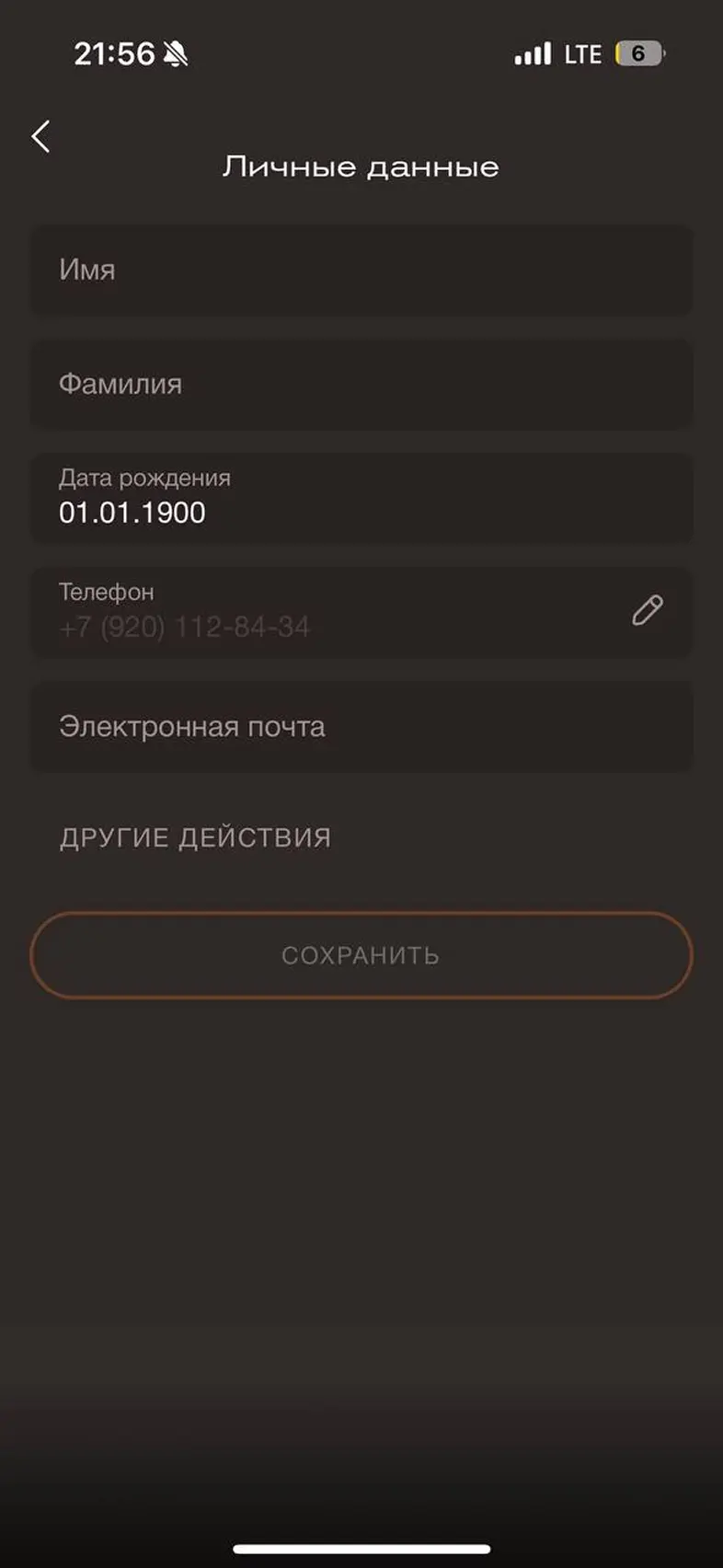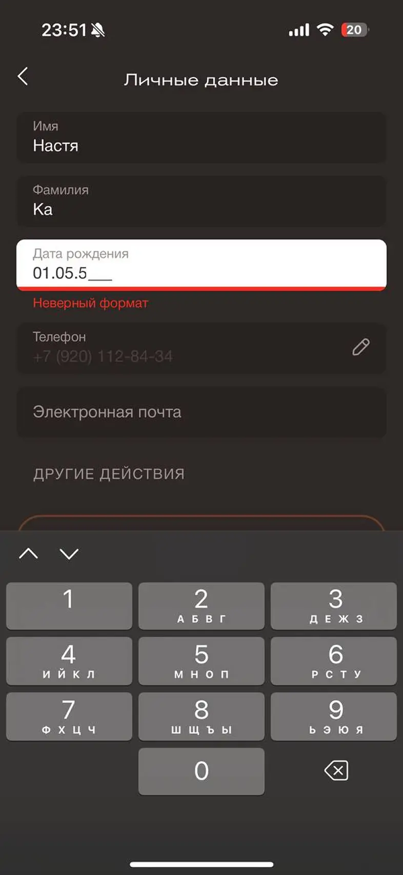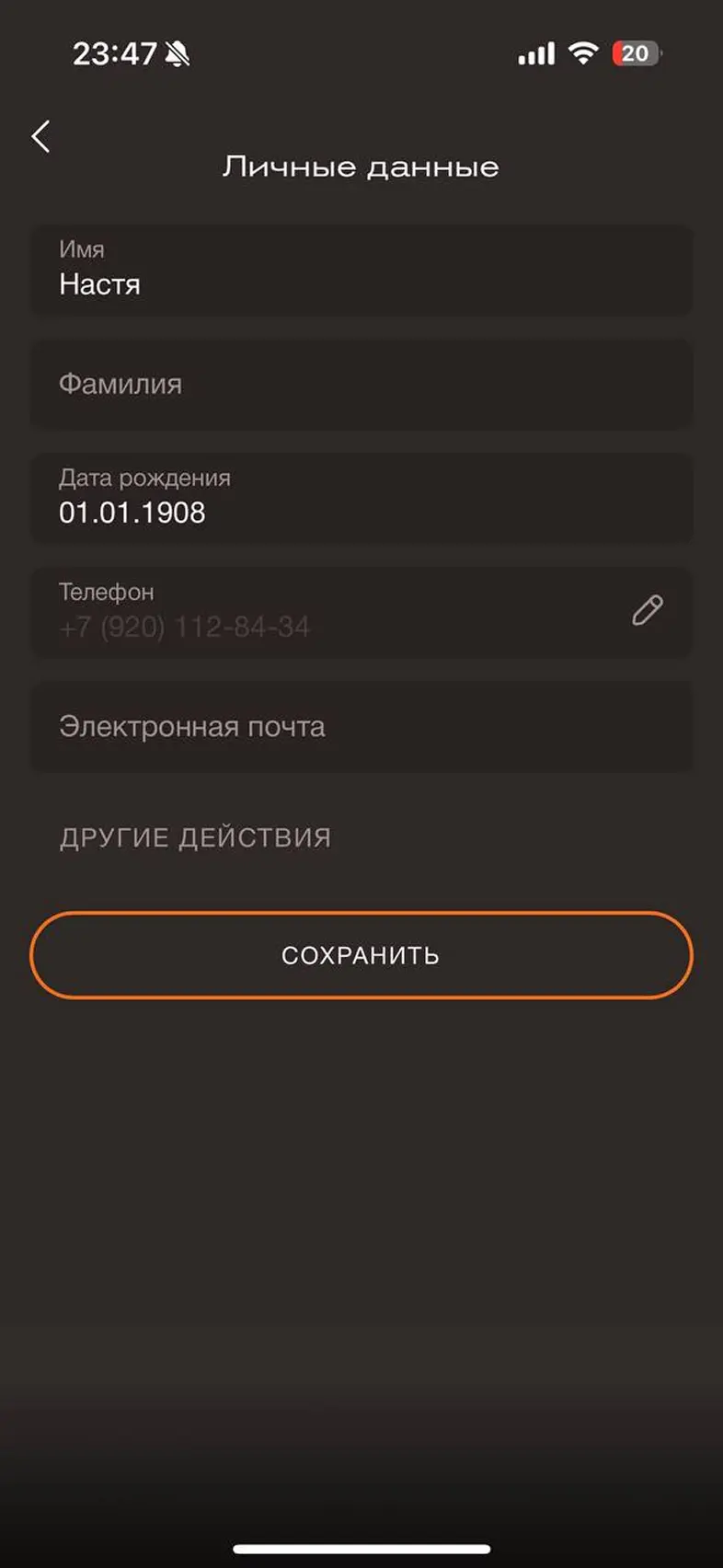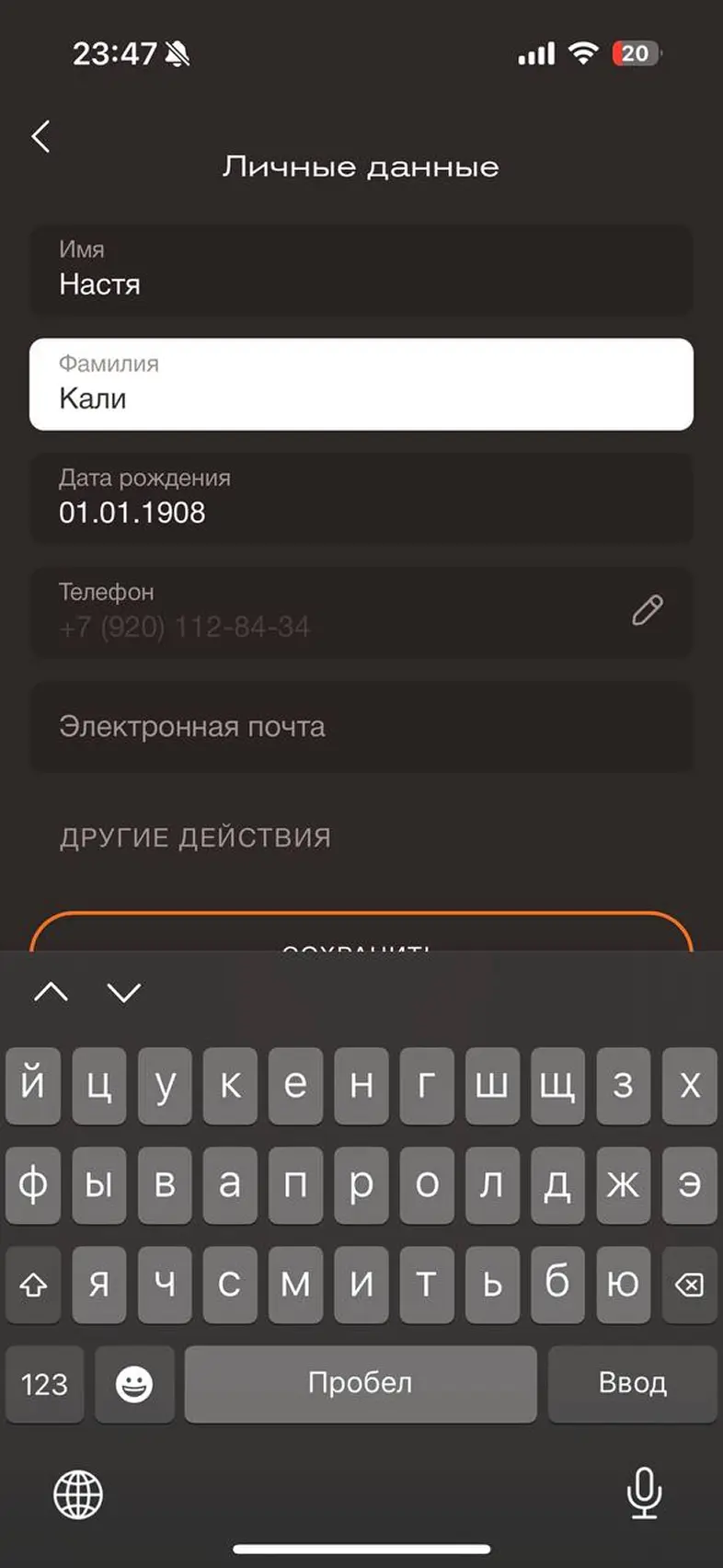 Заполнить личные данные в профиле