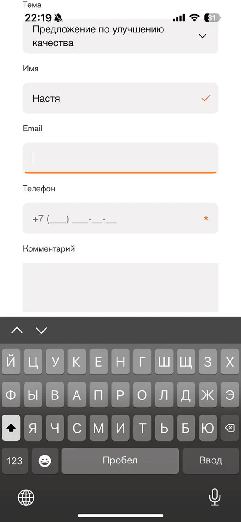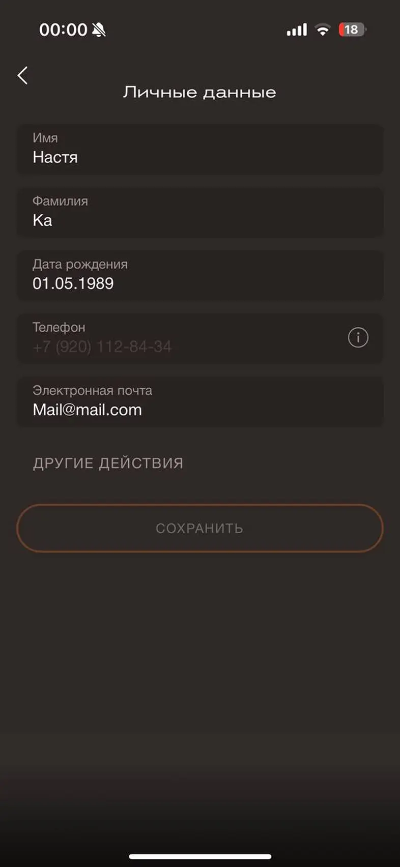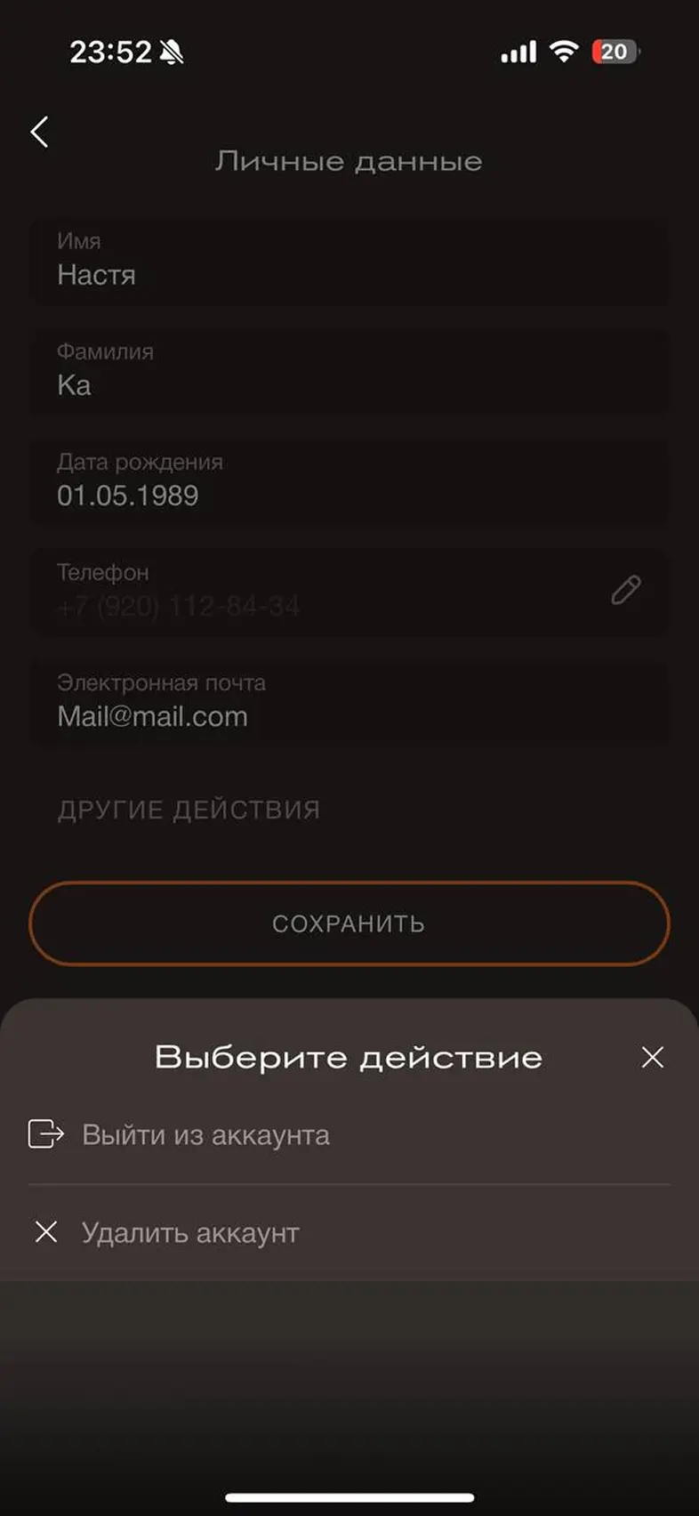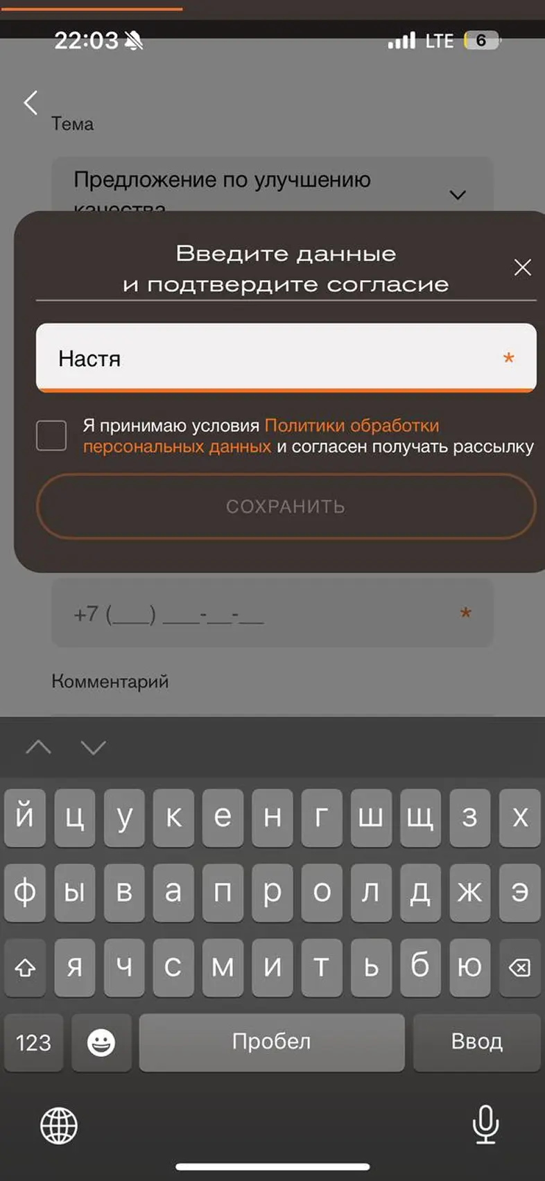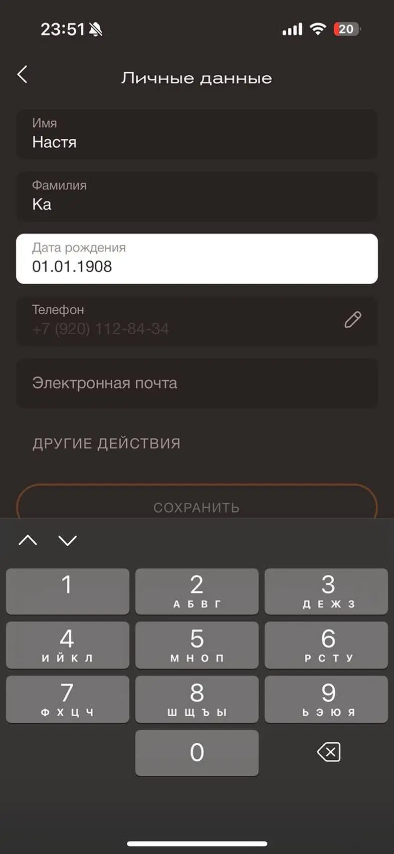 Заполнить личные данные в профиле