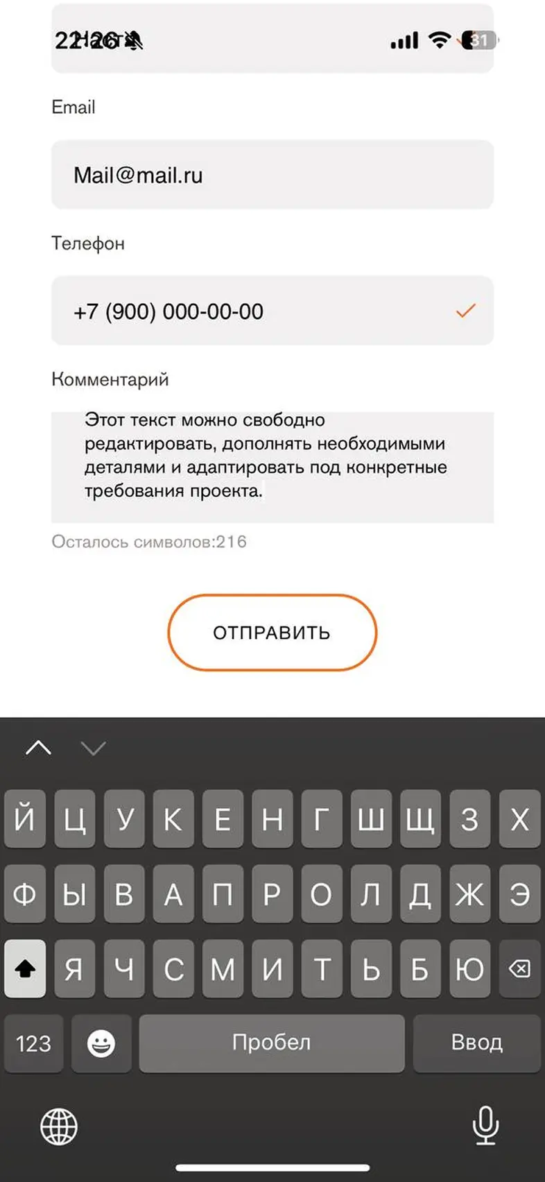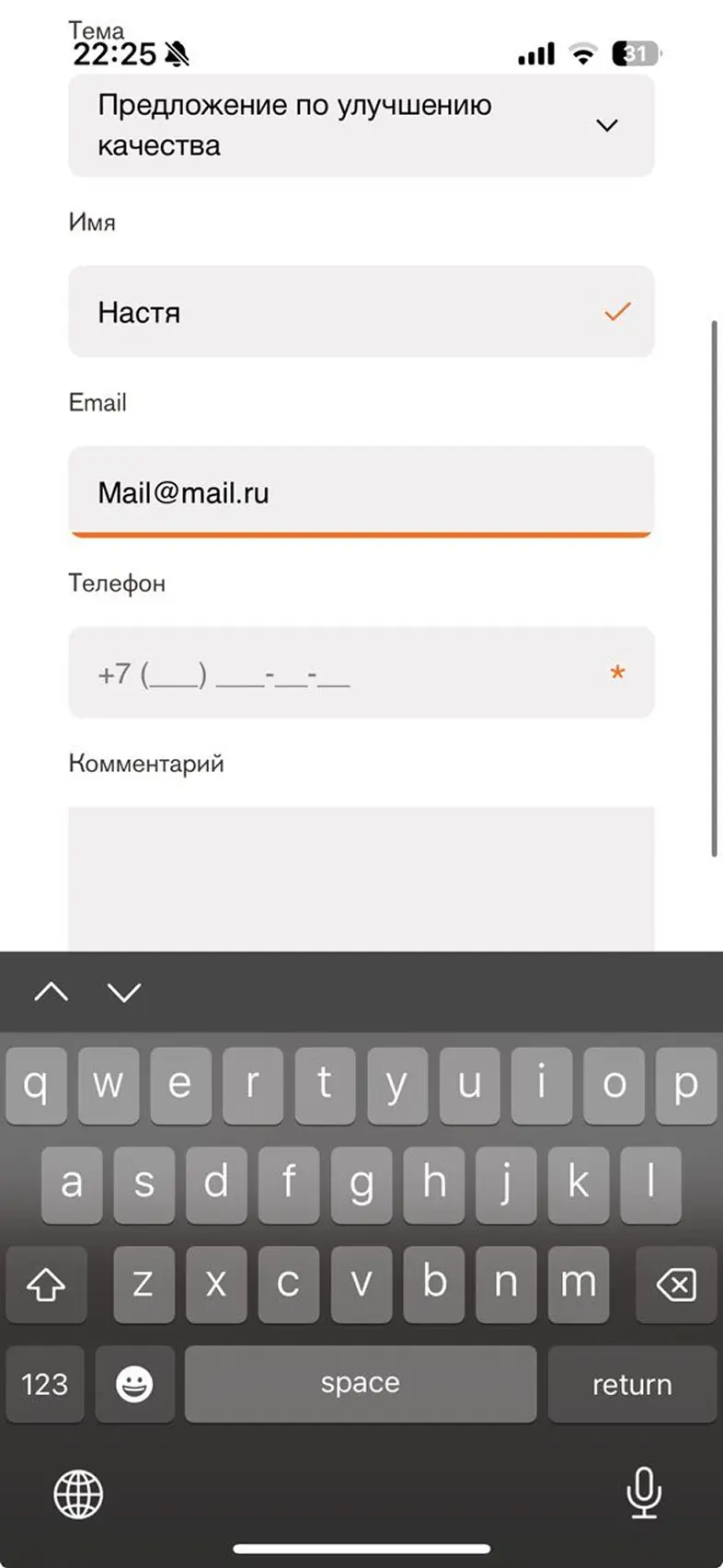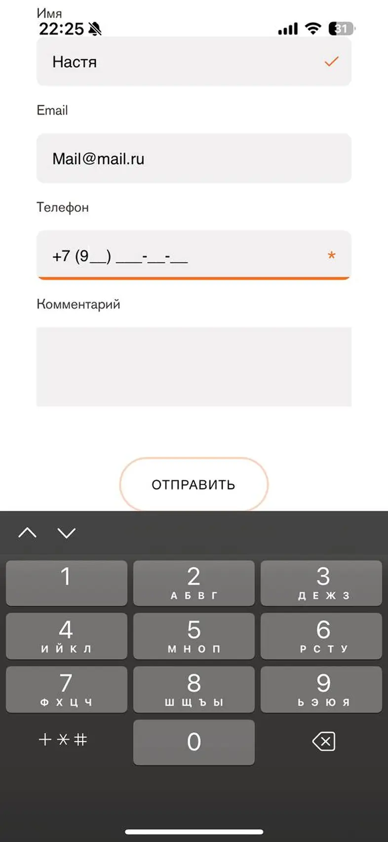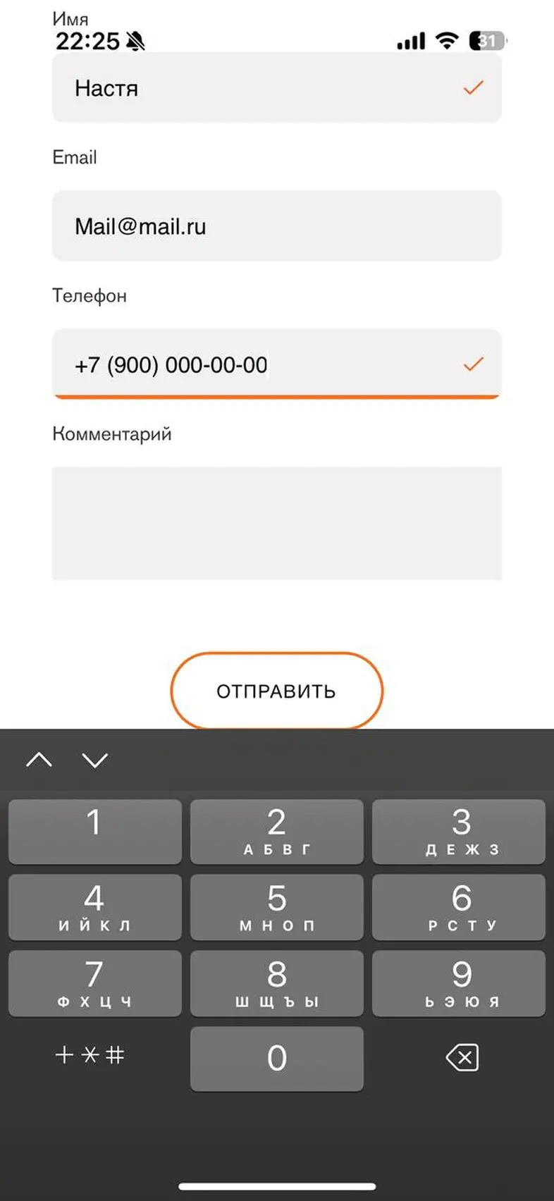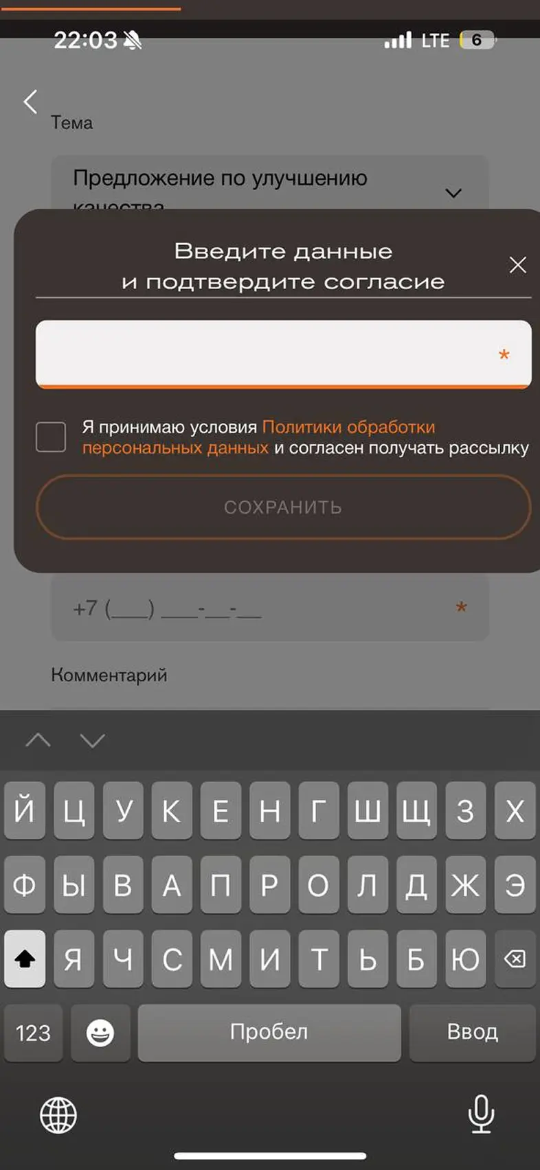 Заполнить личные данные в профиле