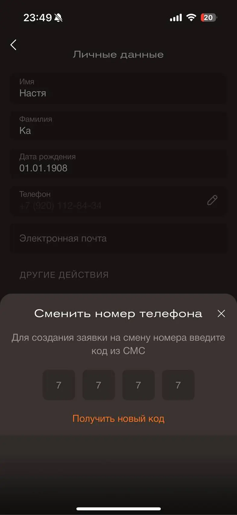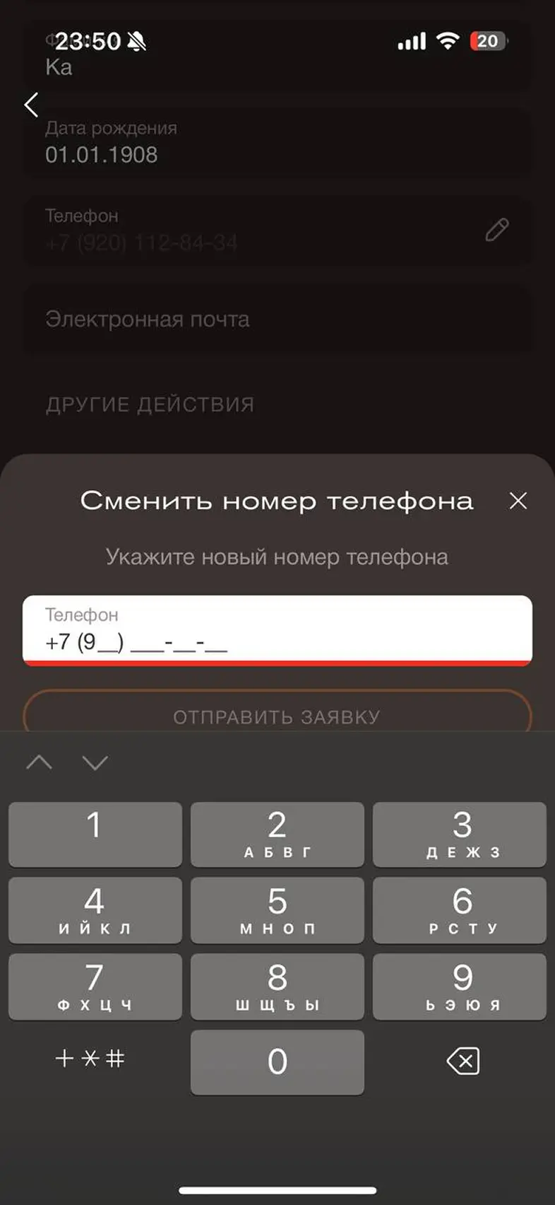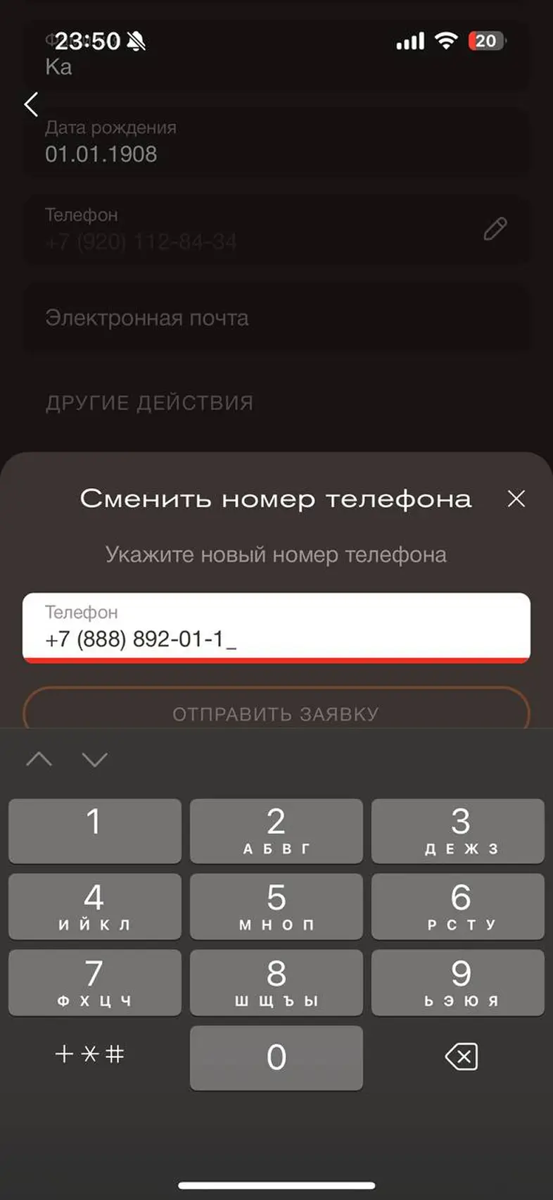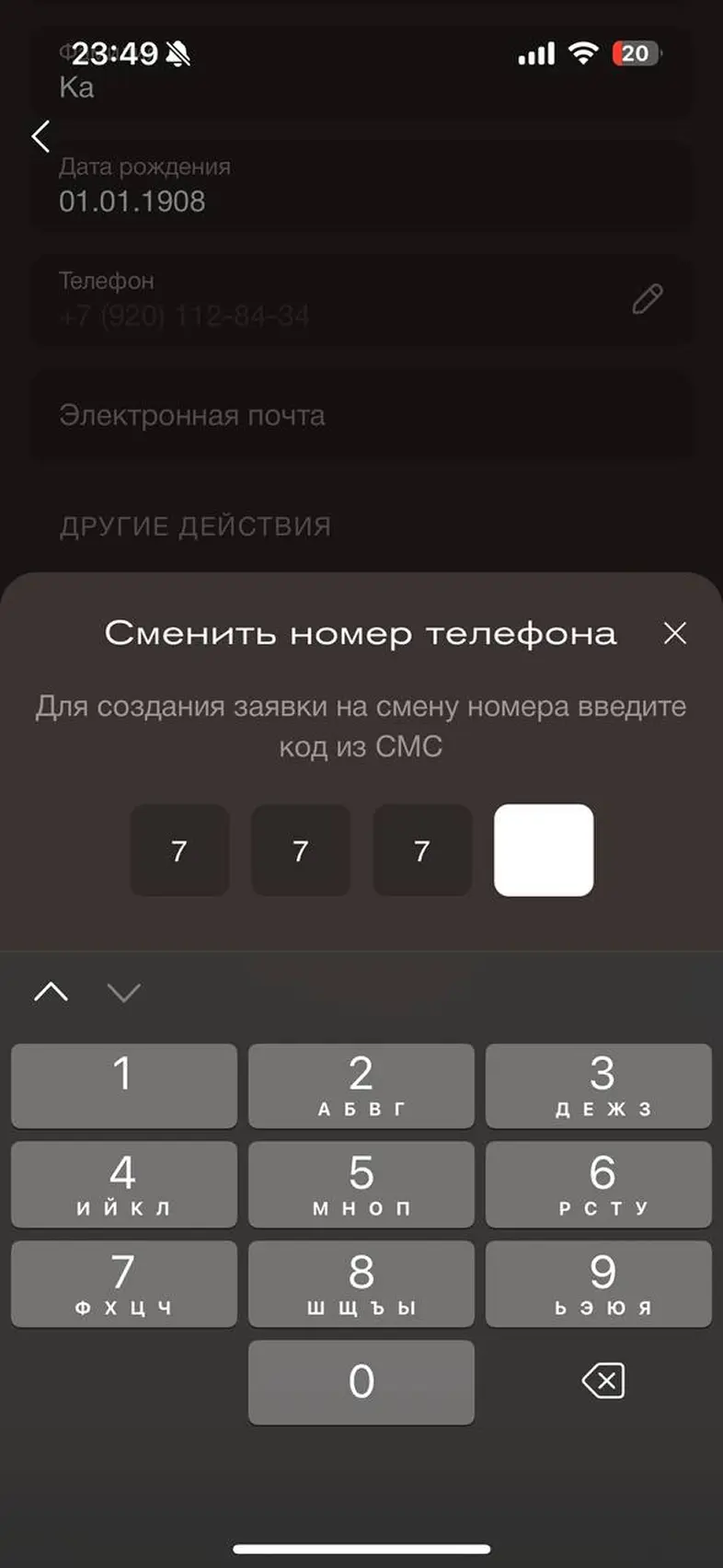 Изменить номер телефона аккаунта