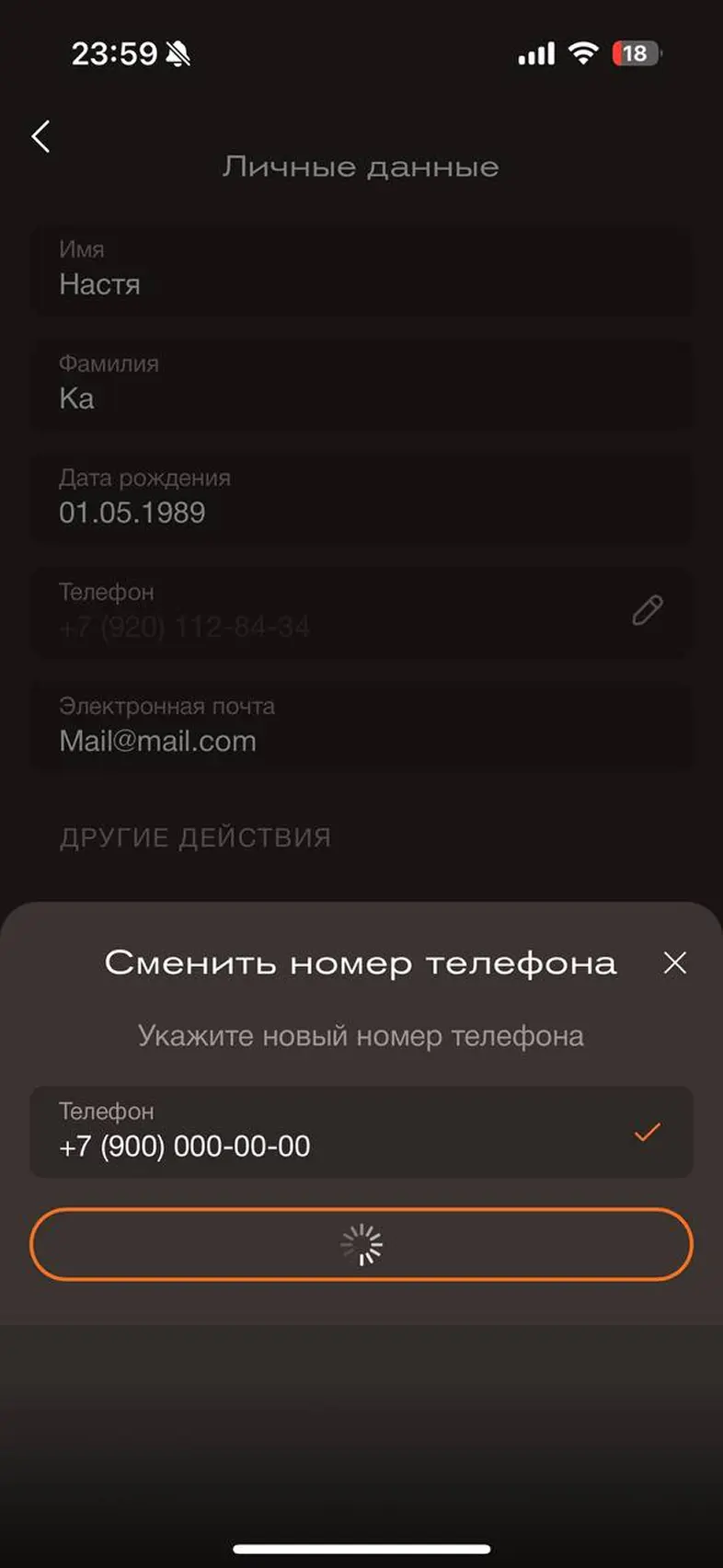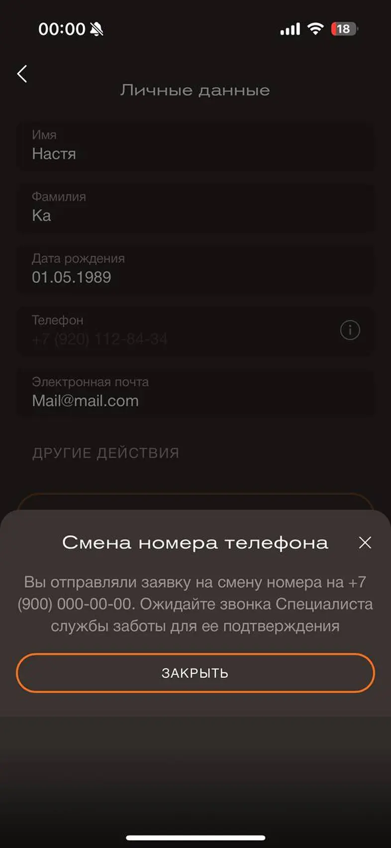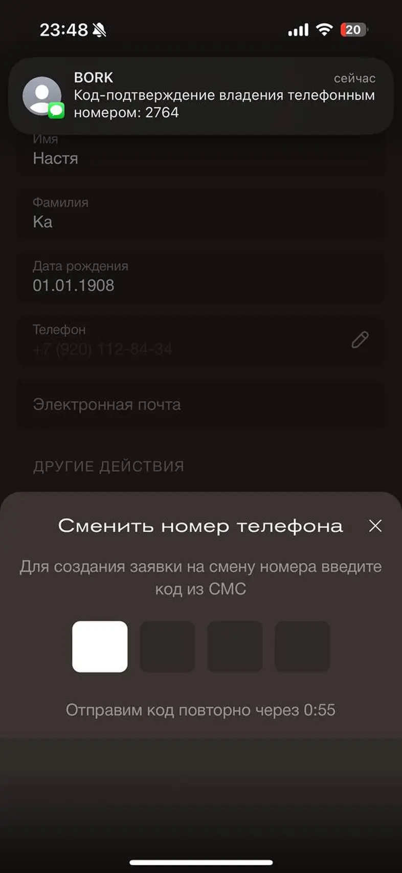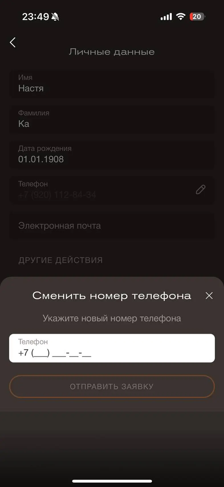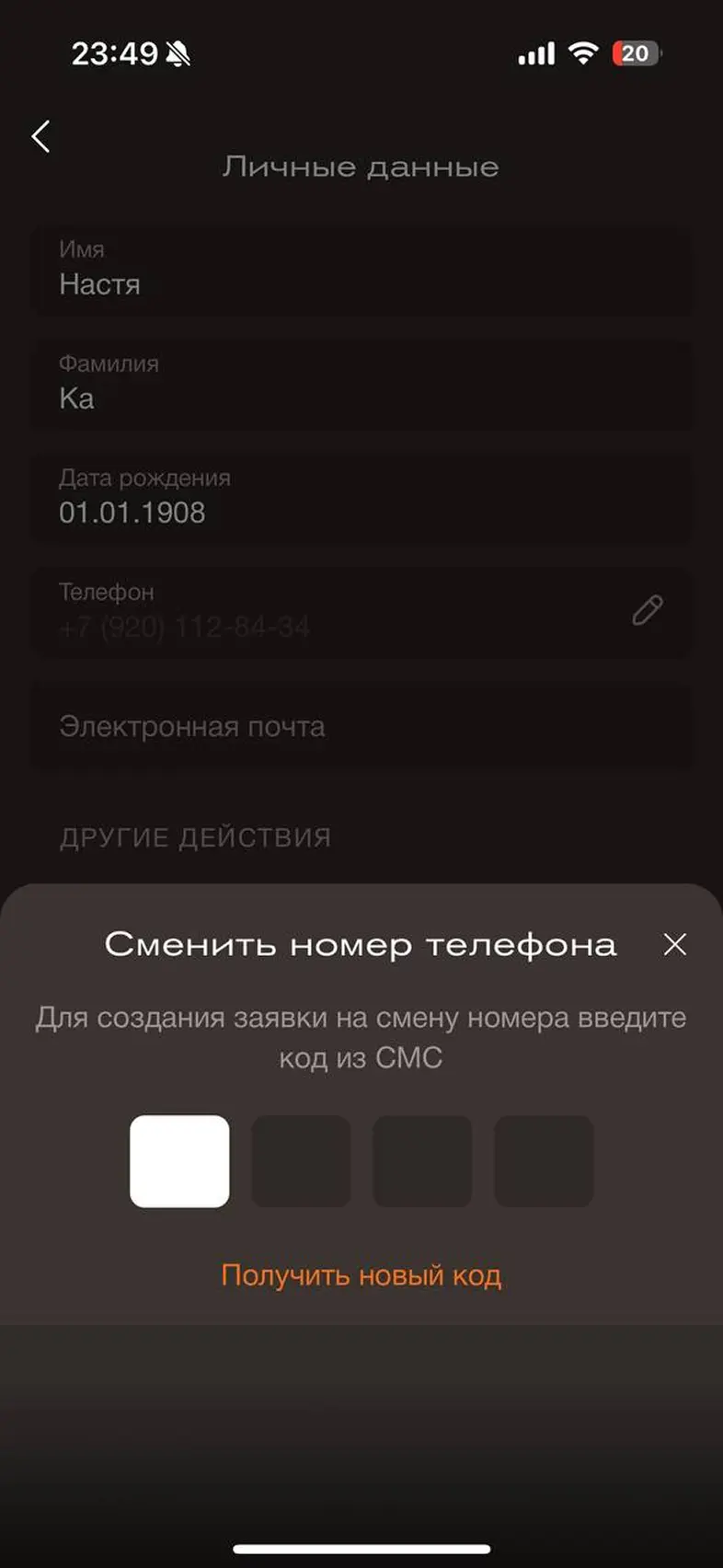 Изменить номер телефона аккаунта