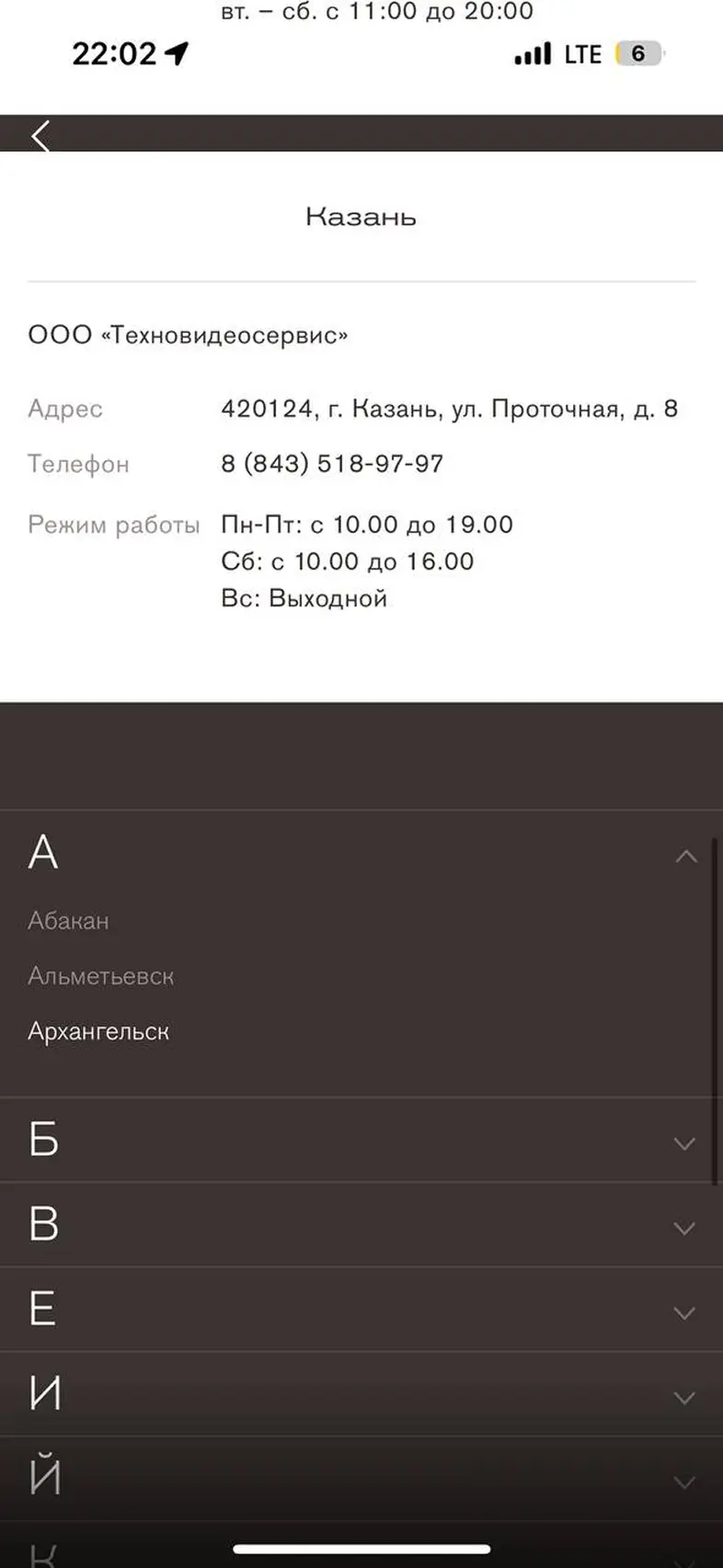 Поиск сервисного центра по списку