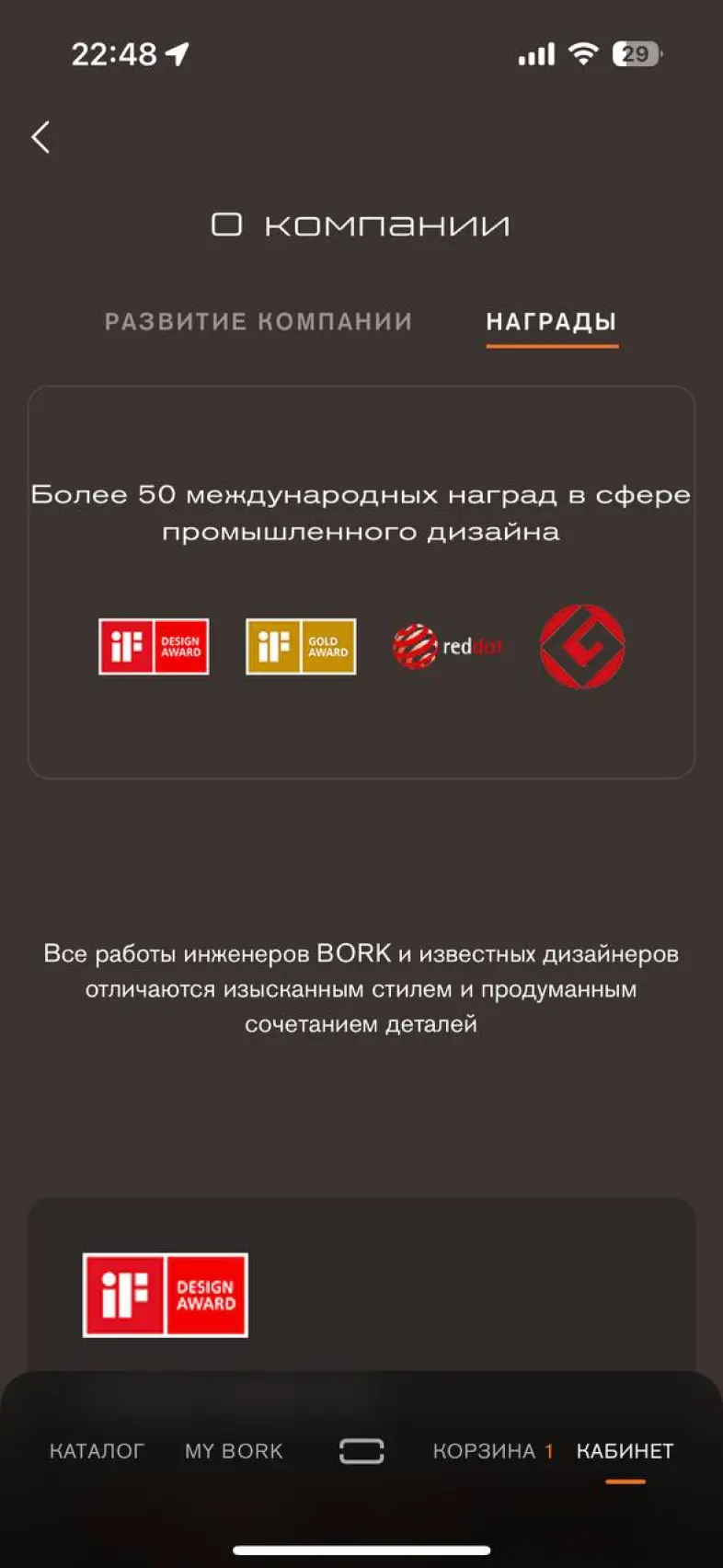 О компании: Развитие компании с переходом в коллекцию, удостоенную награды