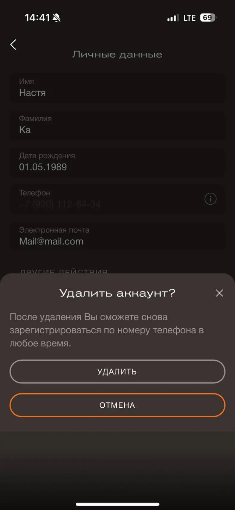 Удалить аккаунт