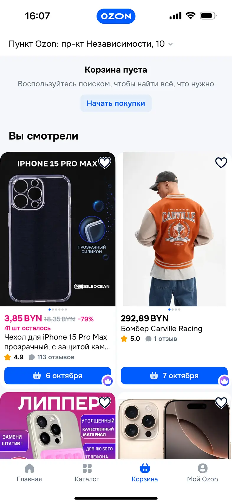 Просмотр корзины